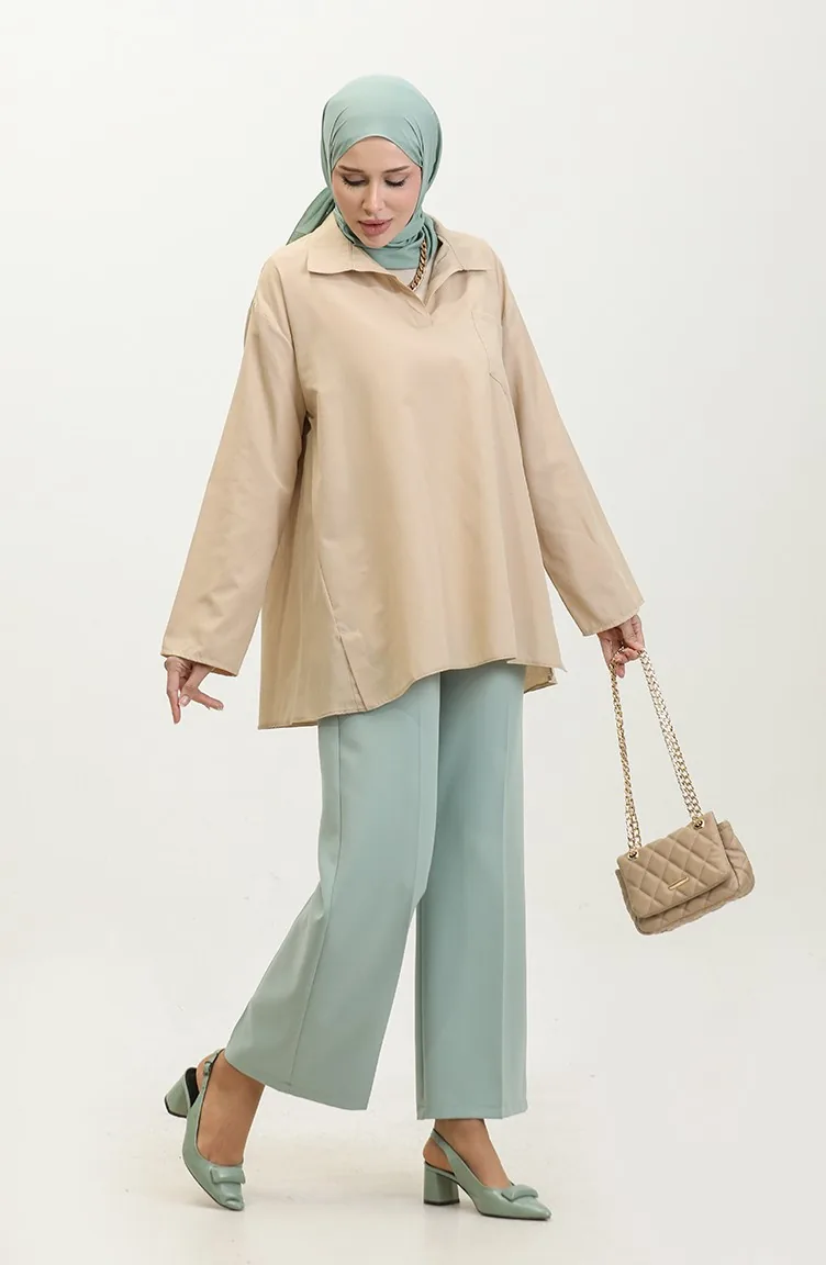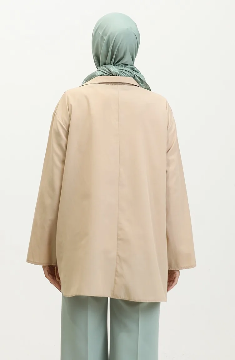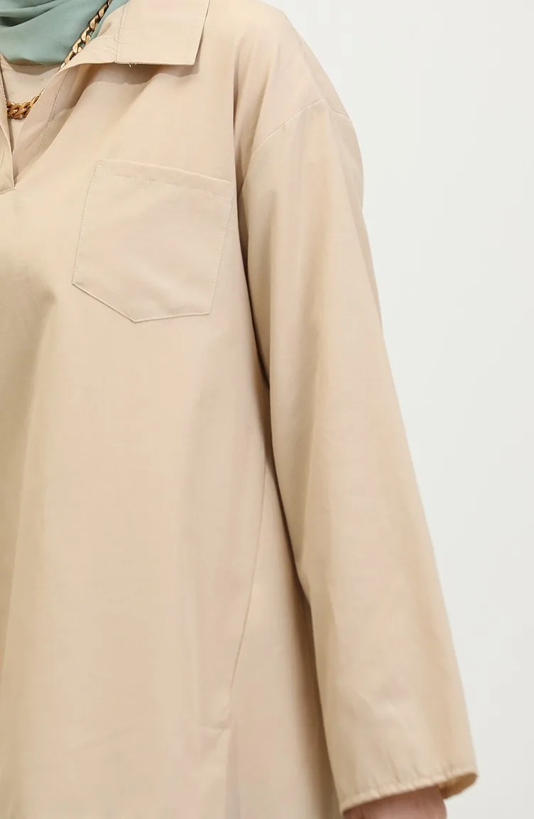 Couleur Beige. Tissu de coton. Simple. Sans doublure. Manches longues. Col Chemise. Adapté pour les 4 saisons. Produit porté par le mannequin est sa propre taille.