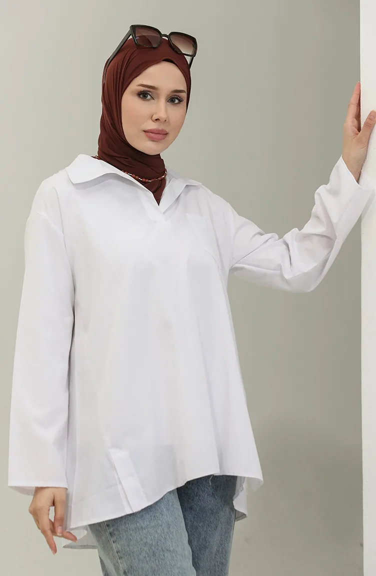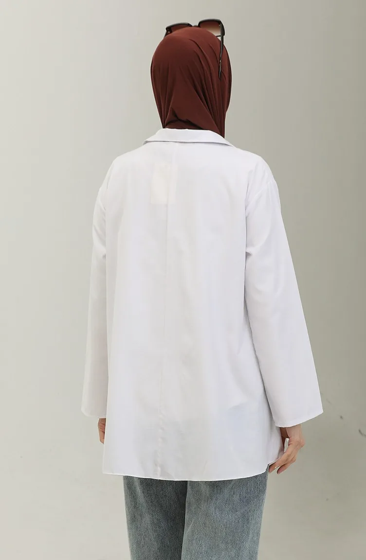 Couleur Blanche. Tissu de coton. Simple. Sans doublure. Manches longues. Col Chemise. Adapté pour les 4 saisons. Produit porté par le mannequin est sa propre taille.