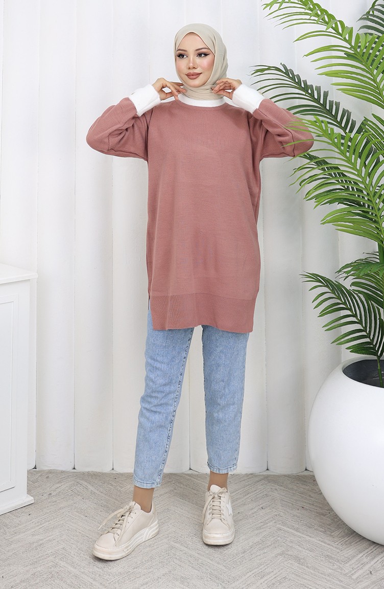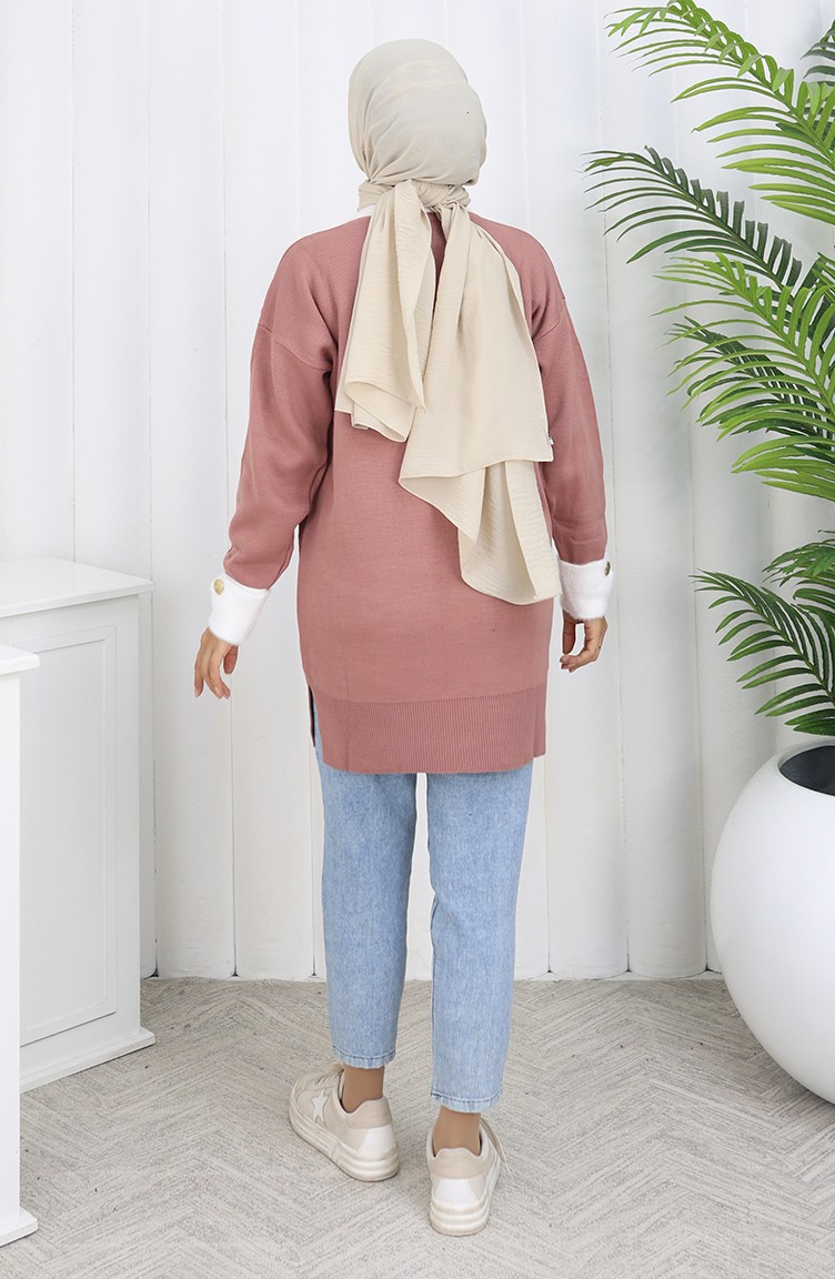 Tunique En Tricot Avec Détails De Boutons Et Garniture 3000-02 Rose Poudré 3000-02