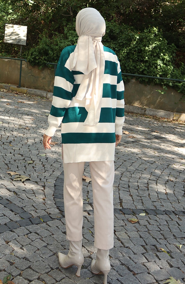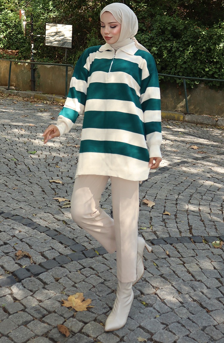 Tunique Zippée En Tricot Color Block 3003-09 Pétrole 3003-09