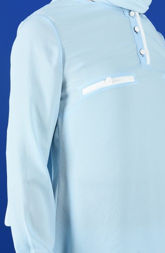 Cep Detaylı Bluz 1559-03 Mavi