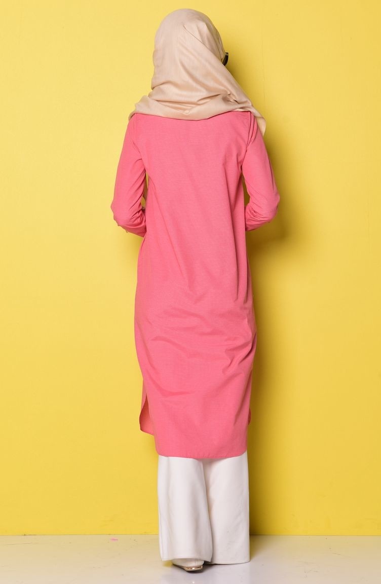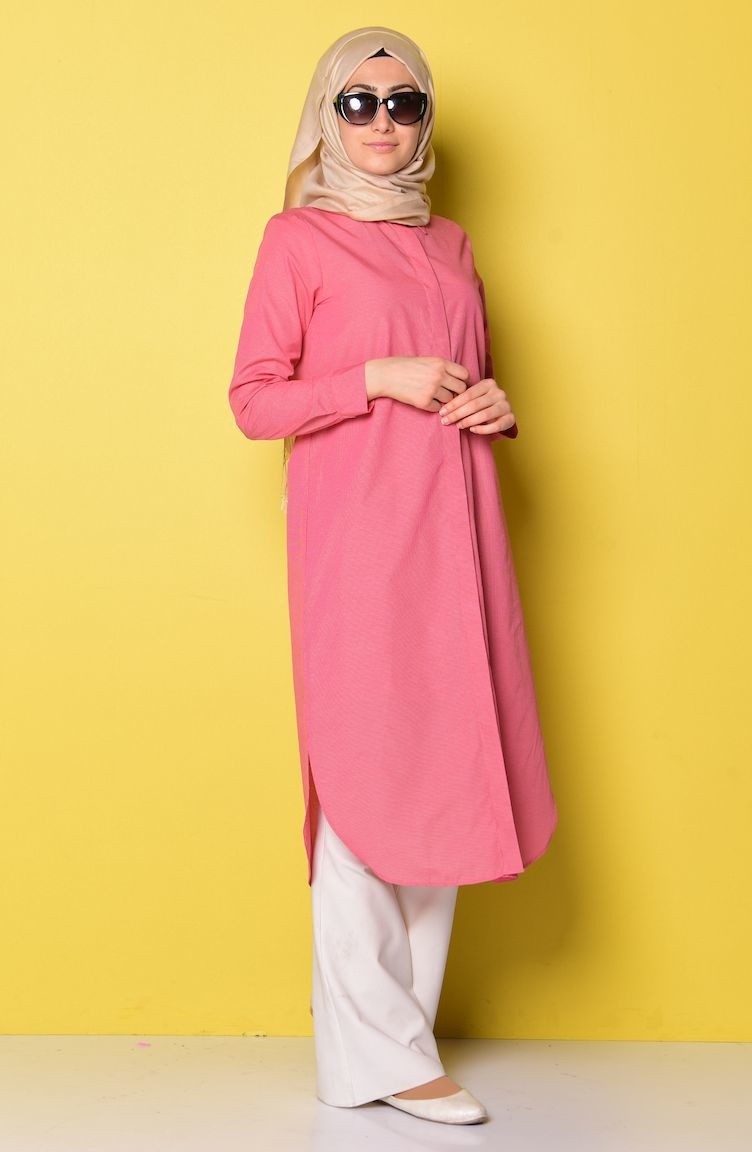 GizliDüğmeli Uzun Gömlek 2834-04 Kırmızı