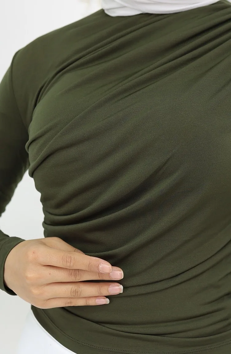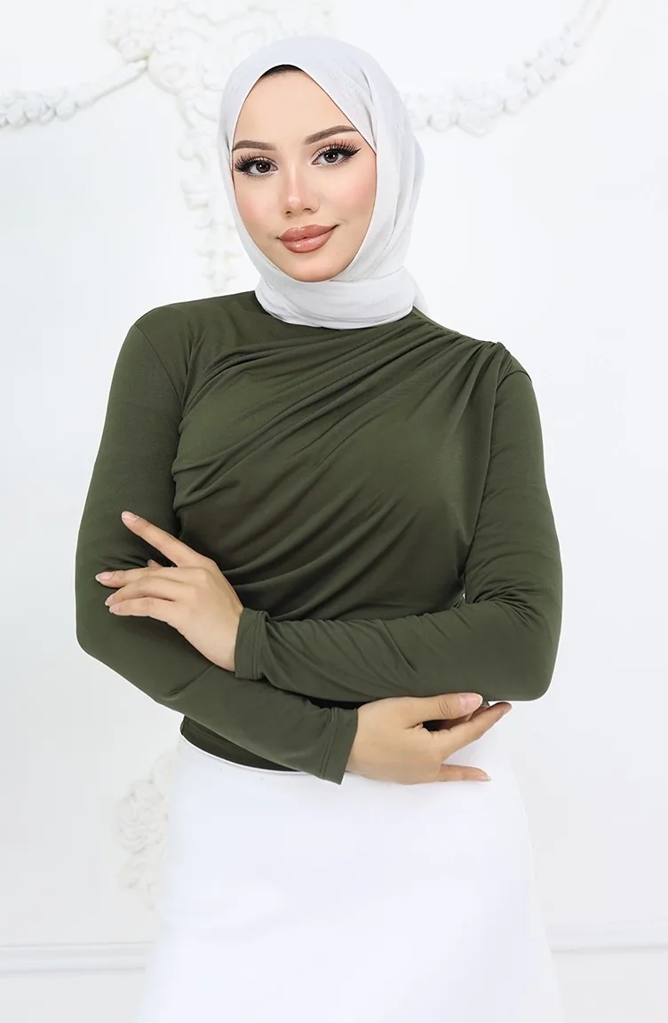 Balıkçı Yaka Bluz 71264-06 Haki