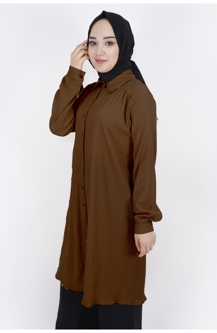 Bürümcük Kumaş Tunik Gömlek 10258-04 Kahverengi