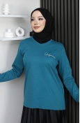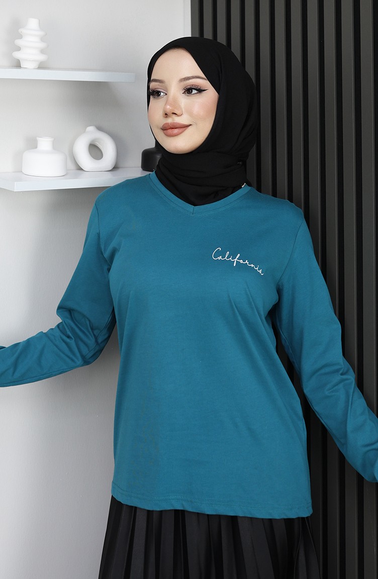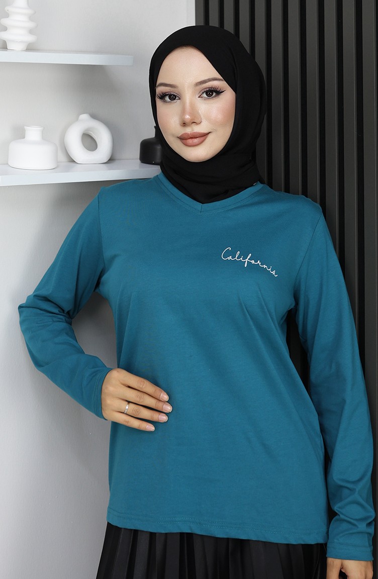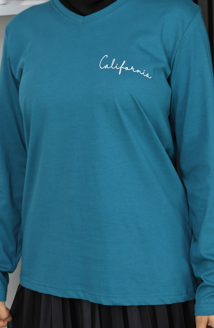 Dijital Baskılı Penye Bluz 1071-02 Petrol
