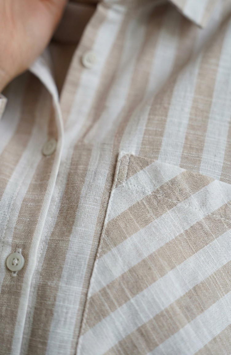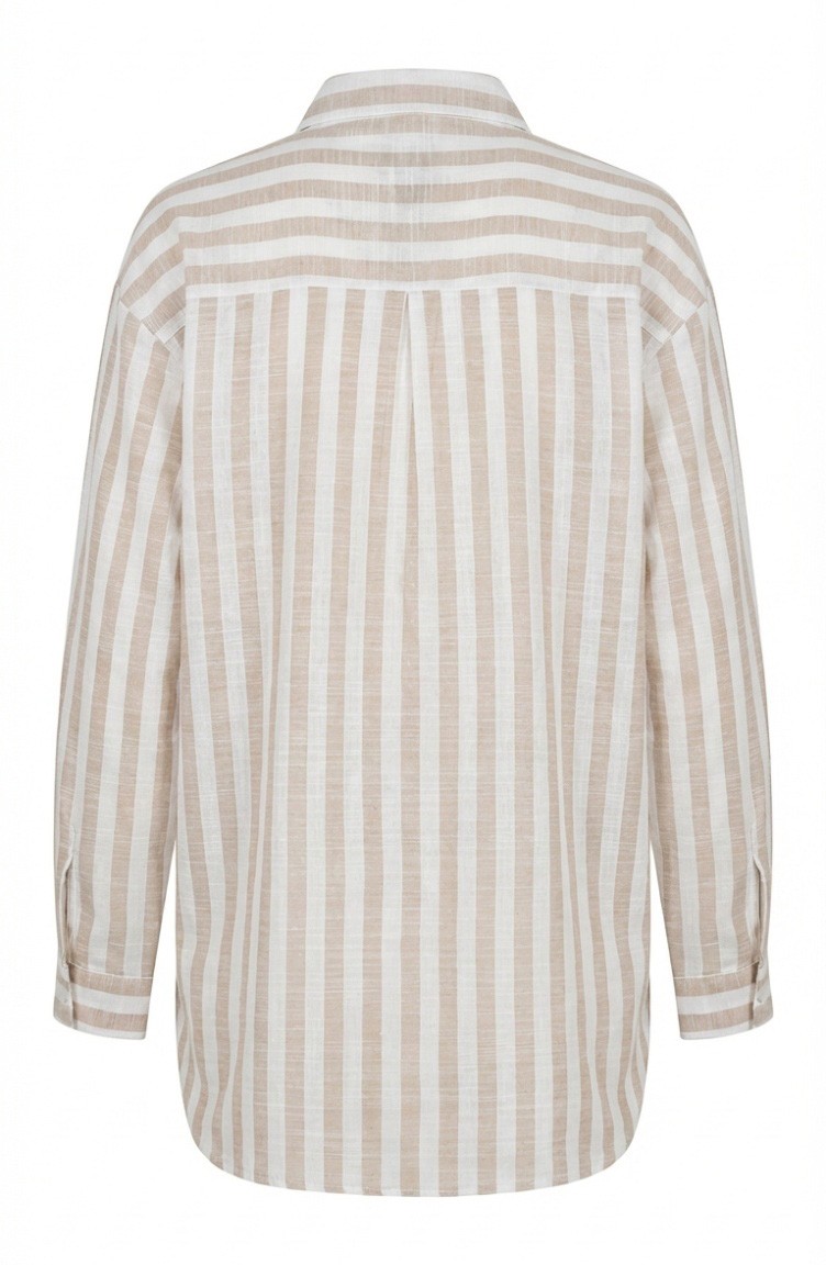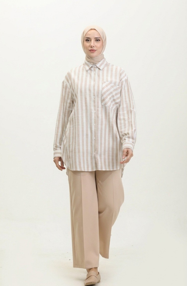 Keten Karışımlı Çizgili Gömlek 4817-03 Vizon
