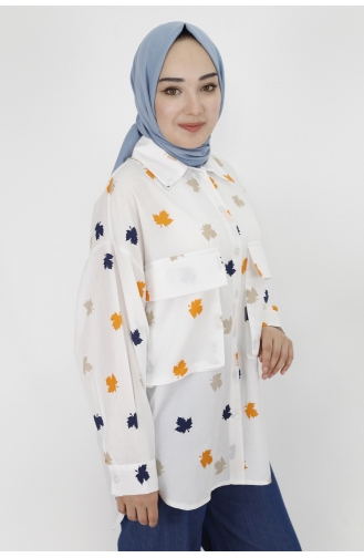 Yaprak Desenli Cepli Gömlek 2046-01 Oranj