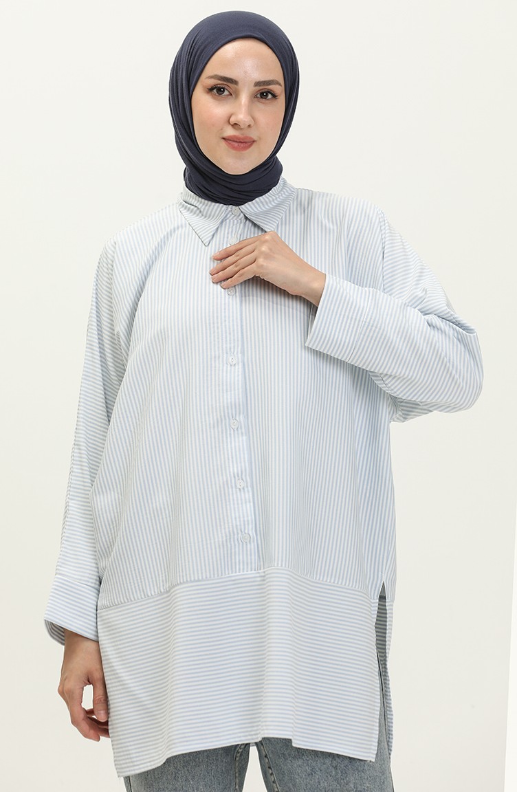 Yırtmaç Detaylı Gömlek 70042-05 Mavi