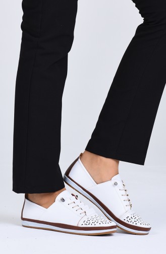 Bayan Lazer Kesim Ayakkabı 1556-01 Beyaz Cilt