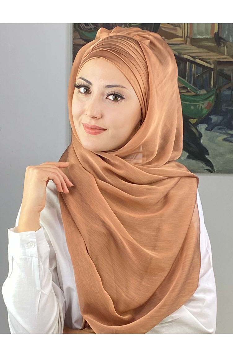 Topkapı Çapraz Drapeli Fransız Şifon Hazır Şal SBT4SAL15-07 Bakır Rengi