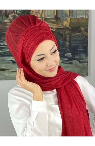 Topkapı Çapraz Fransız Şifon Drapeli Simli Hazır Şal SBT4SAL1-05 Kırmızı