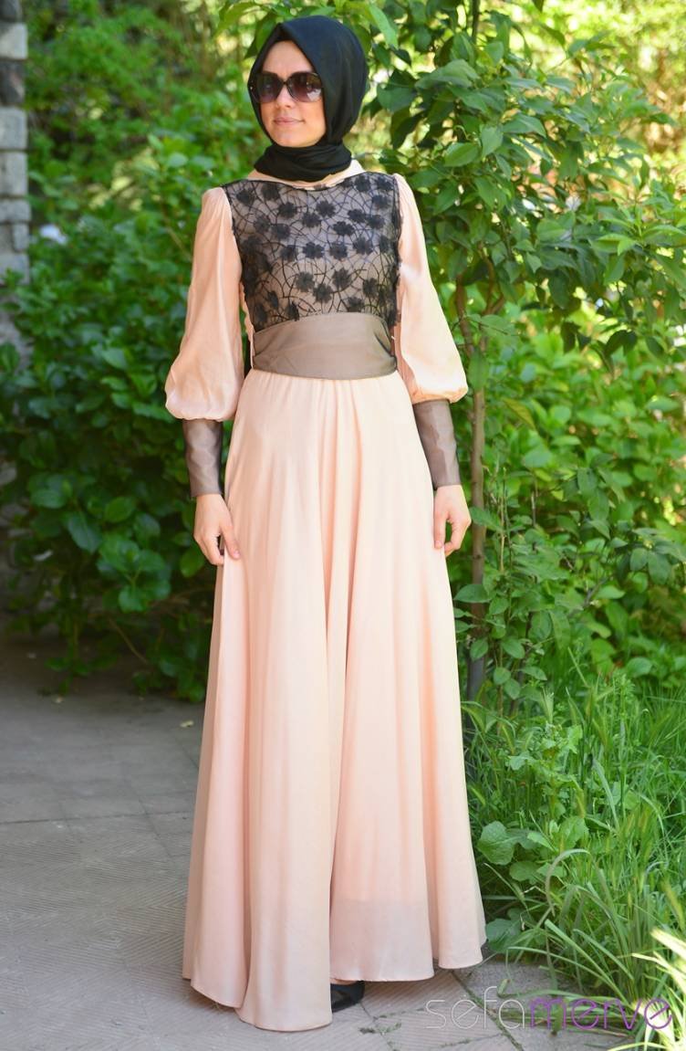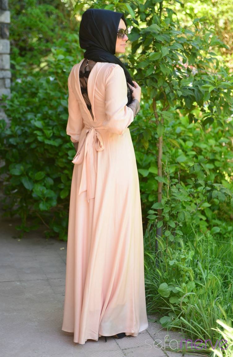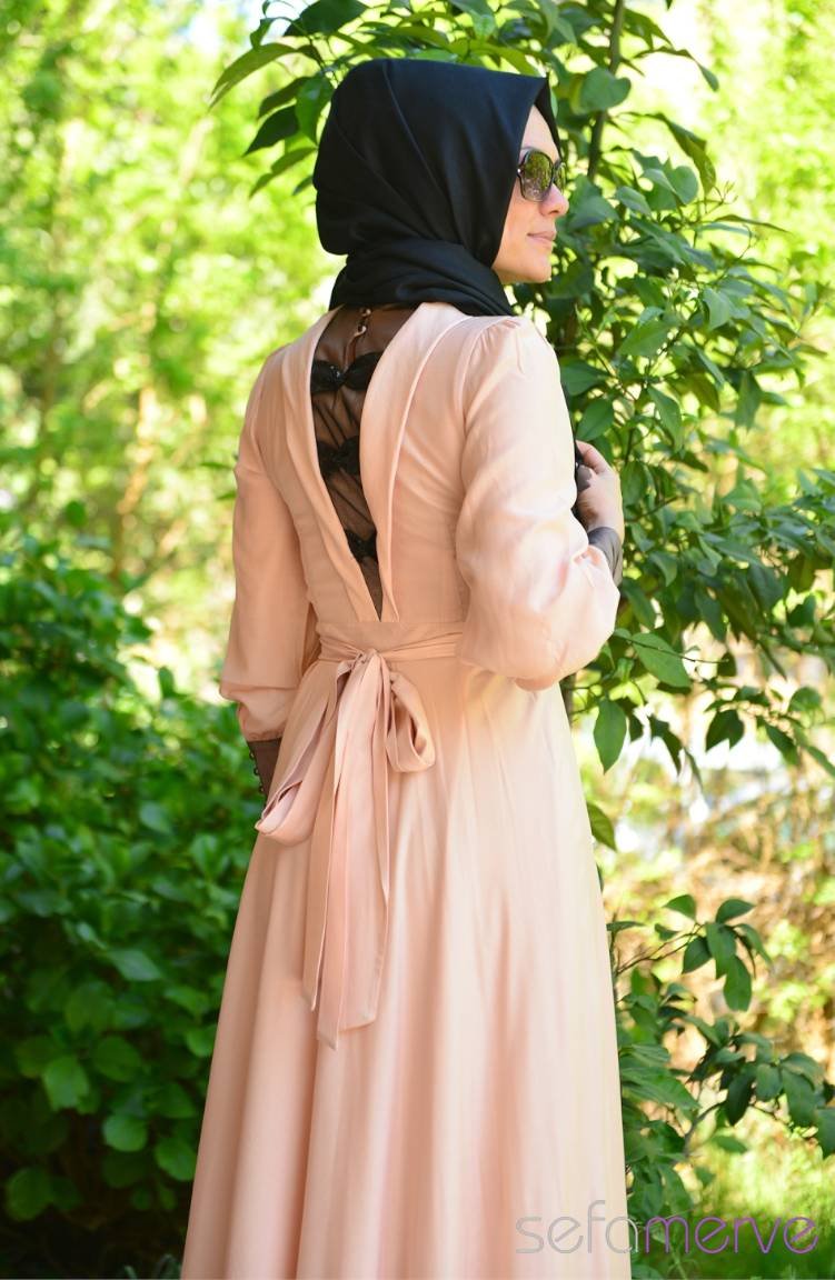 Famelin Tesettür Abiye Elbise 4897-04 Somon