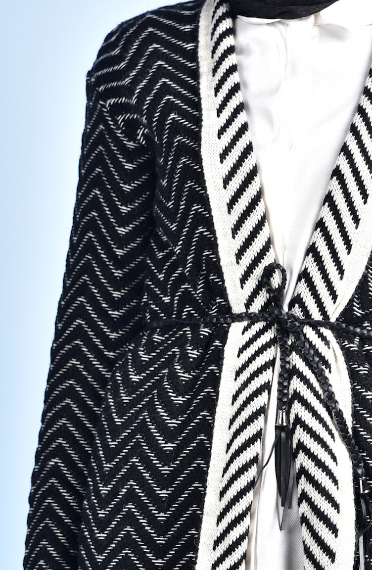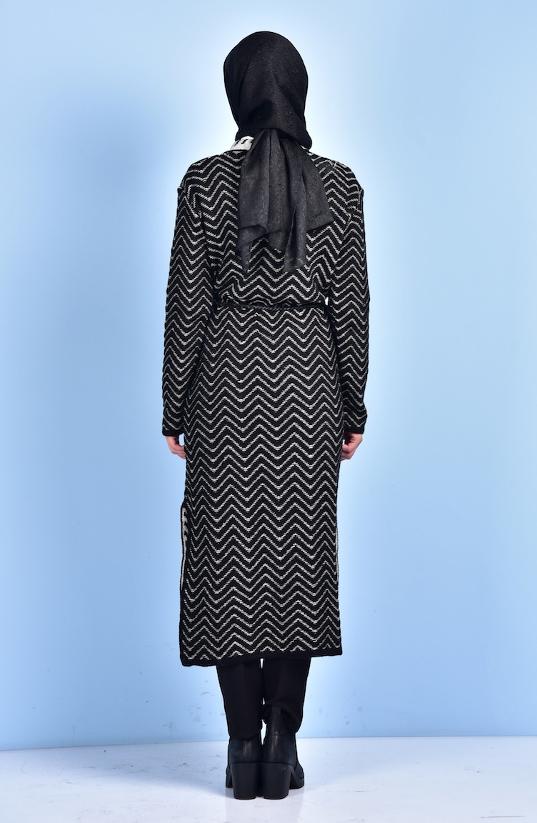 Siyah renktedir. Triko. Çizgilidir. Kemerli. Uzun kolludur. Kışlık. Standart.