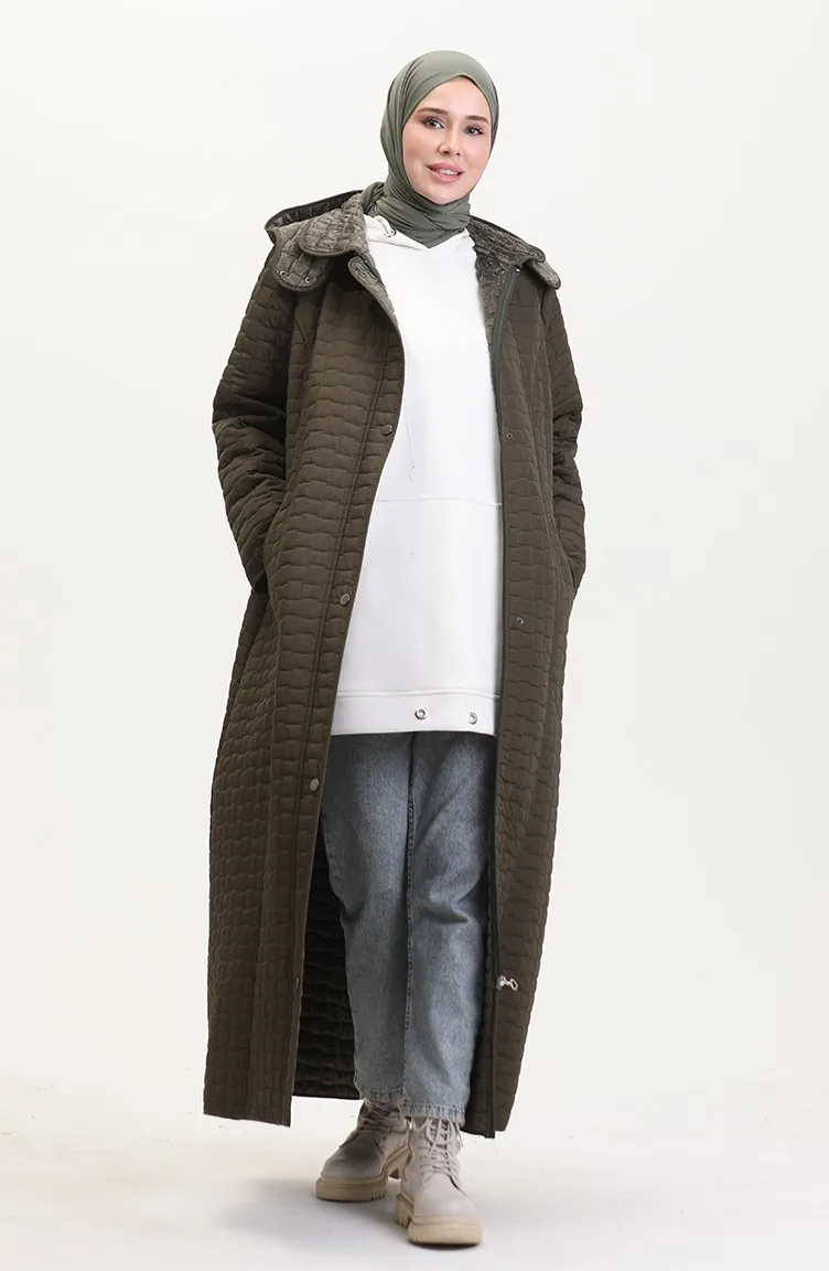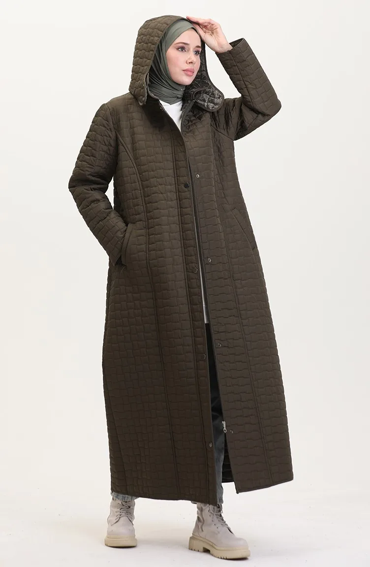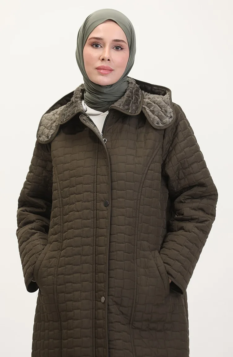 Büyük Beden Kapüşonlu Kapitone Mont 6134-01 Haki