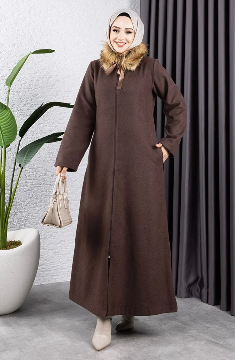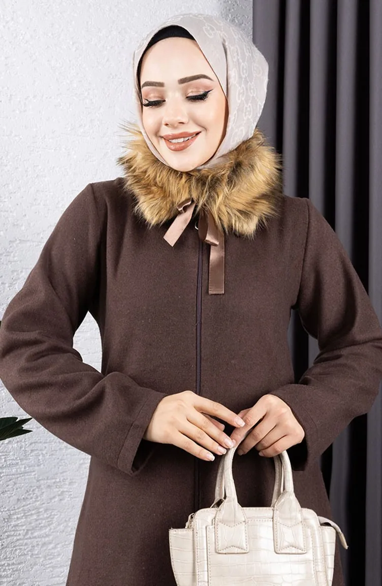 Kürk Yaka Kaşe Kaban 2060-04 Kahverengi