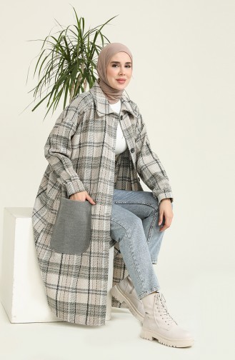 Ekose Desenli Düğmeli Kap 4005D-01 Gri Lacivert
