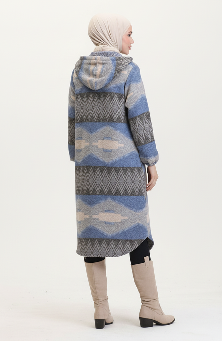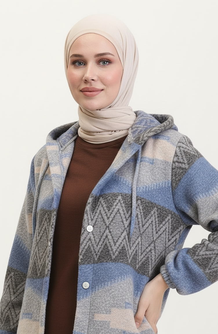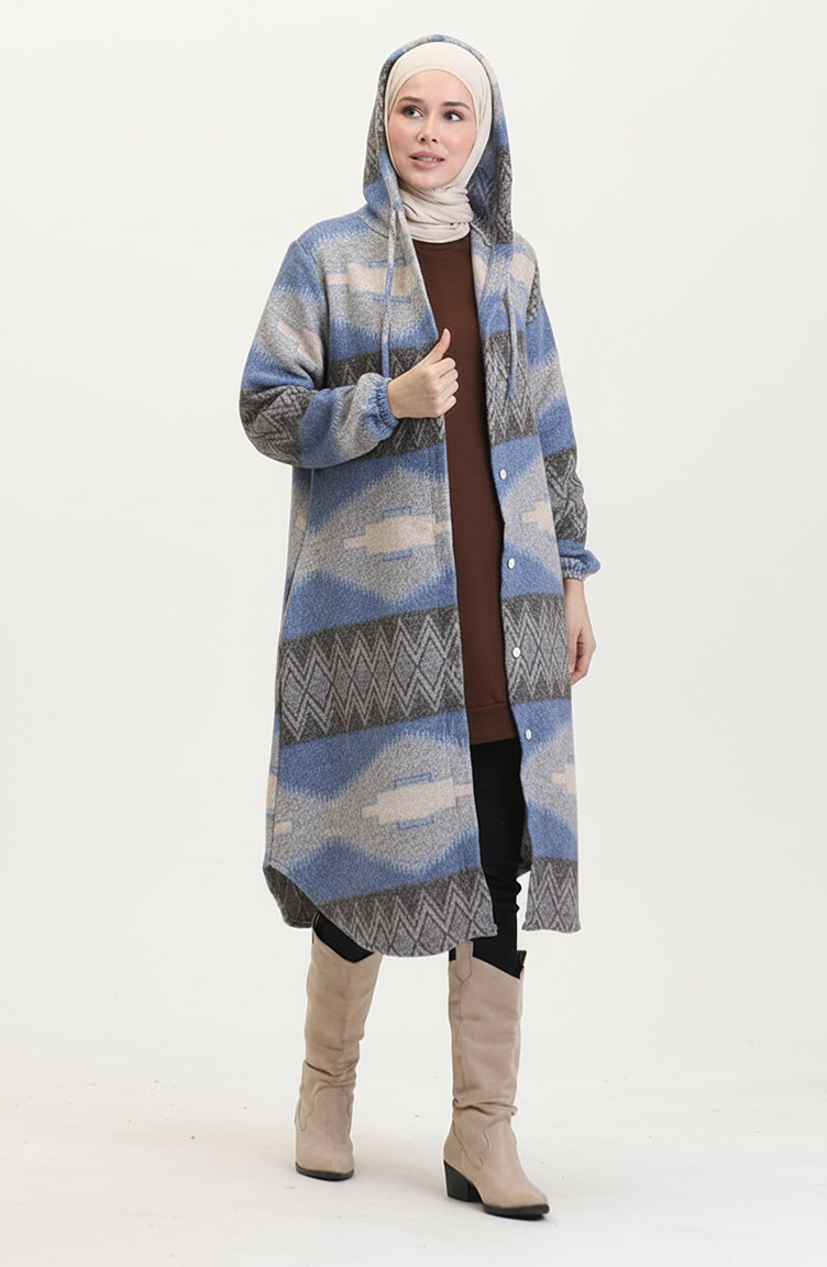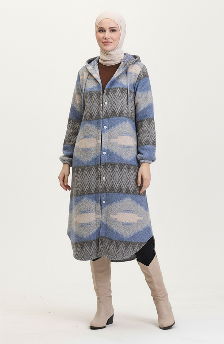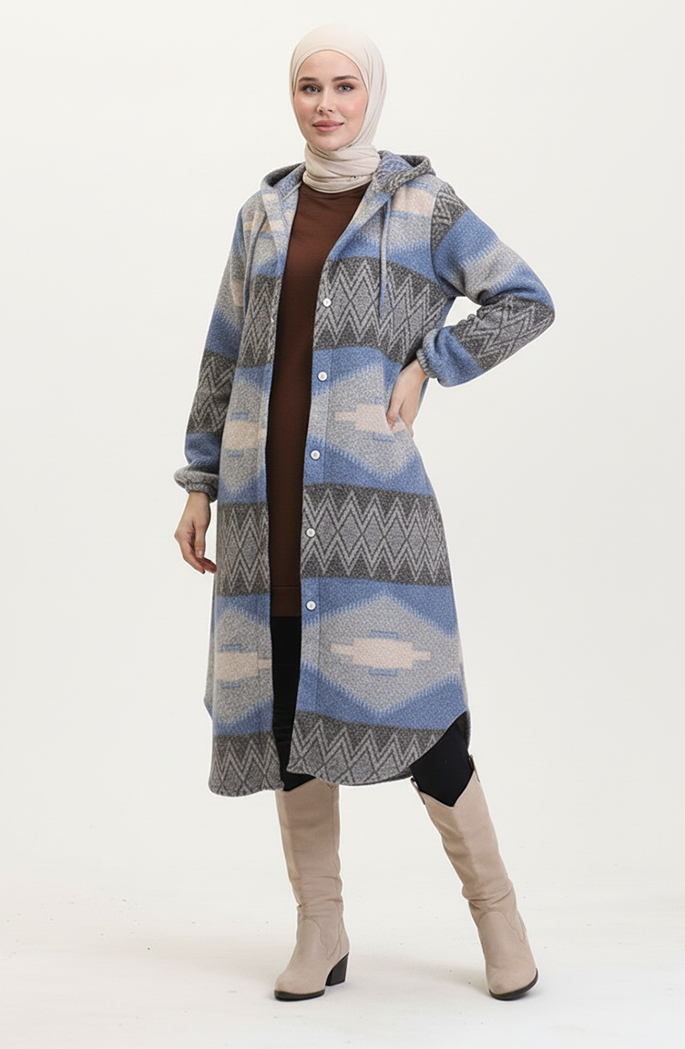 Vizon renktedir. Pamuk dokuma kumaş. Desenli kumaş. Kapüşonlu. Lastik kollu. Kışlık. Standart.