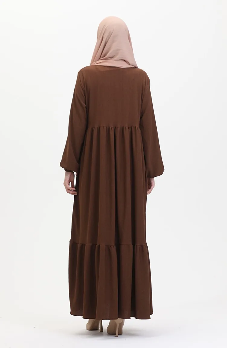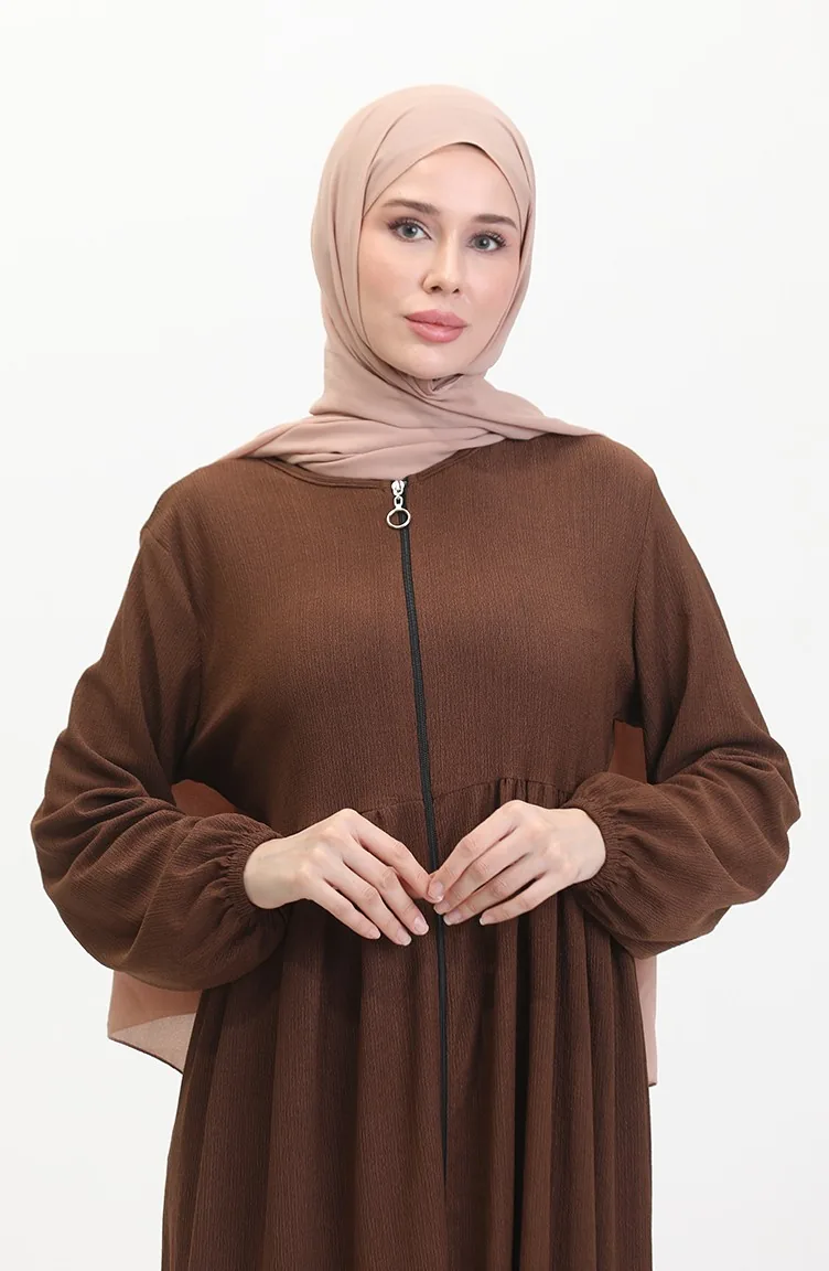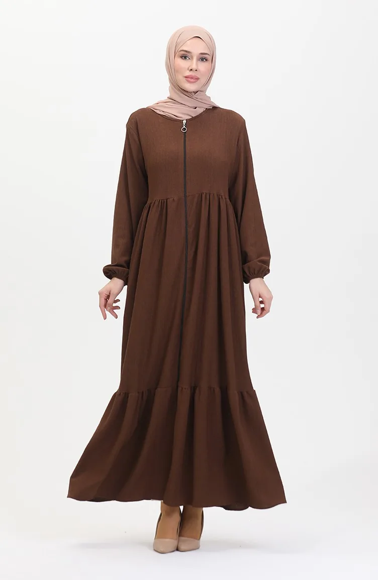 Bürümcük Kumaş Büzgülü Fermuarlı Ferace 1018-08 Kahverengi