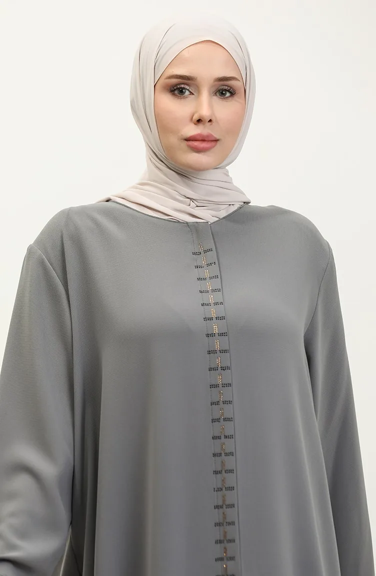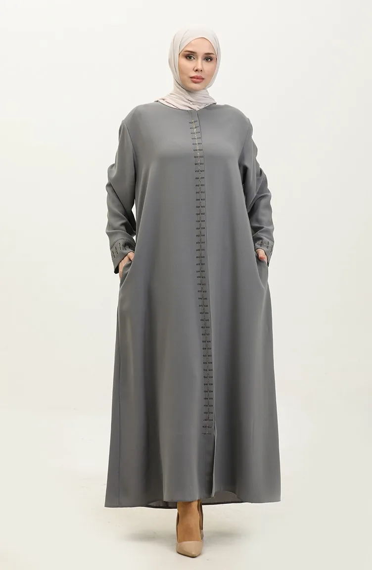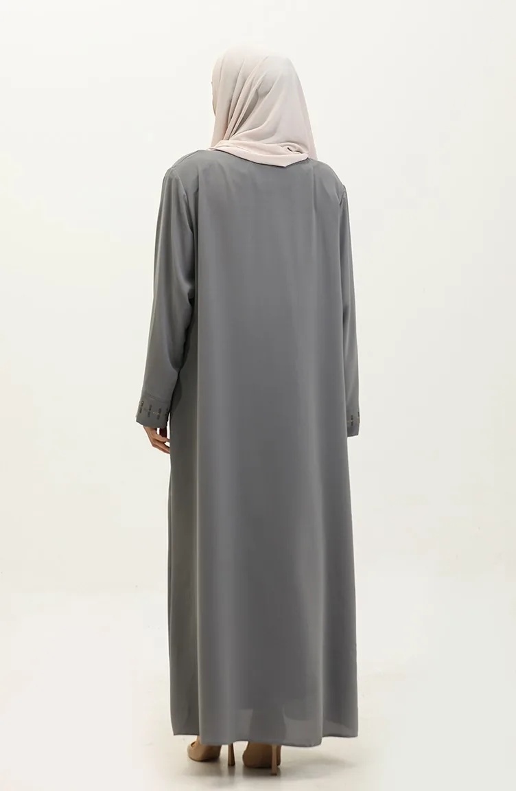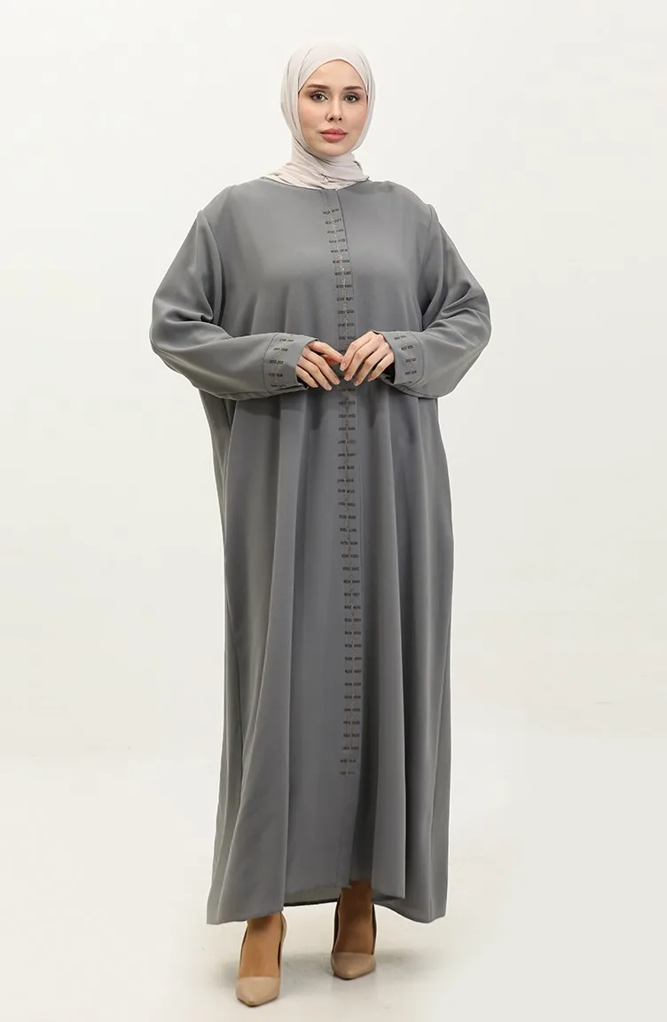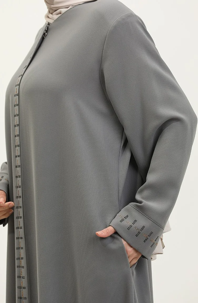 Büyük Beden Gizli Fermuarlı Ferace 5068-05 Gri