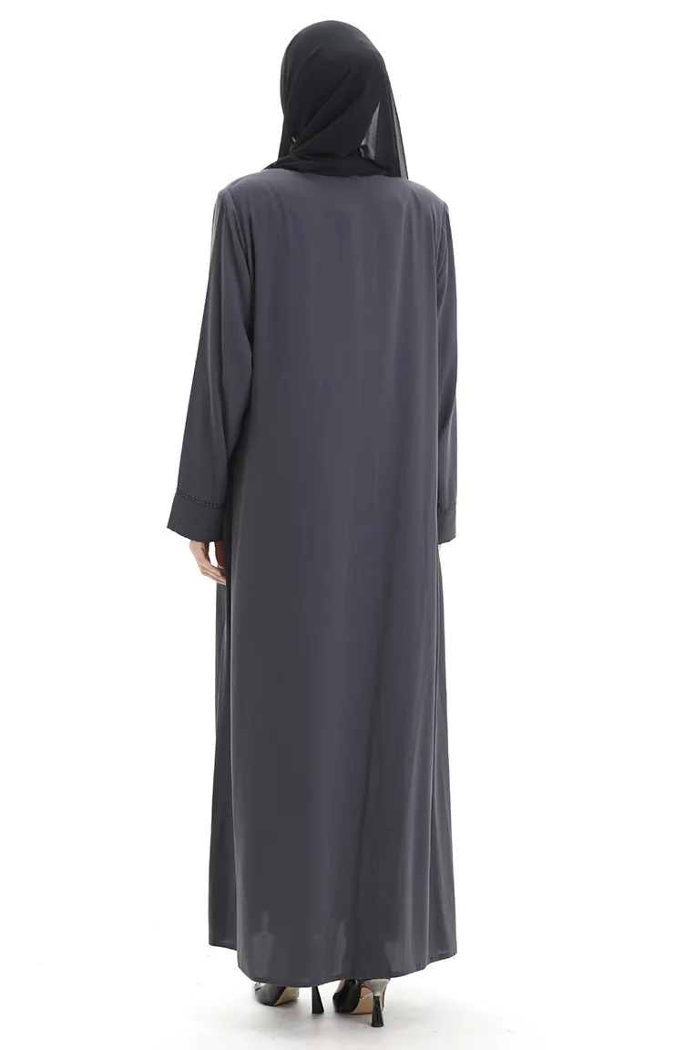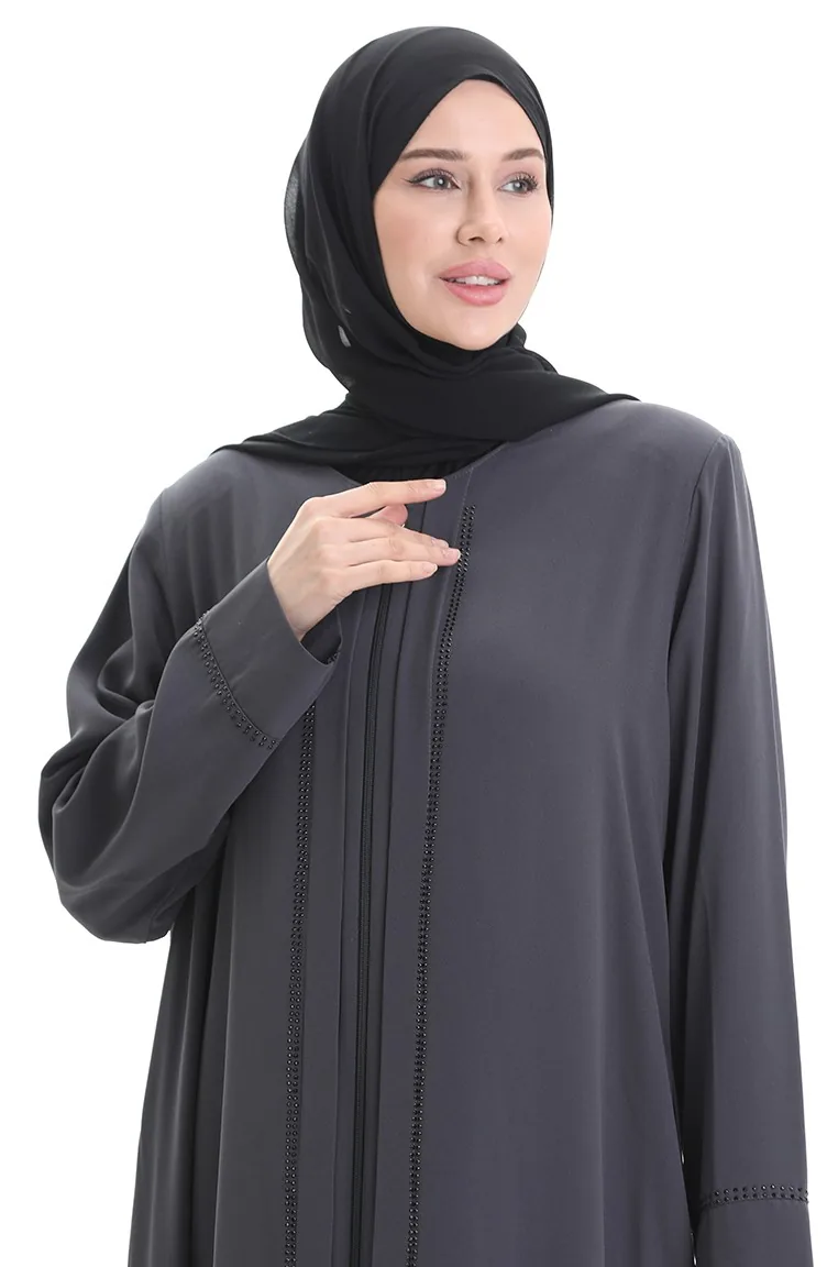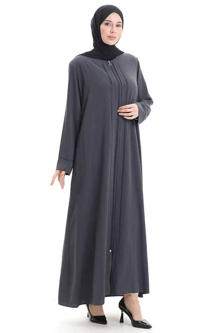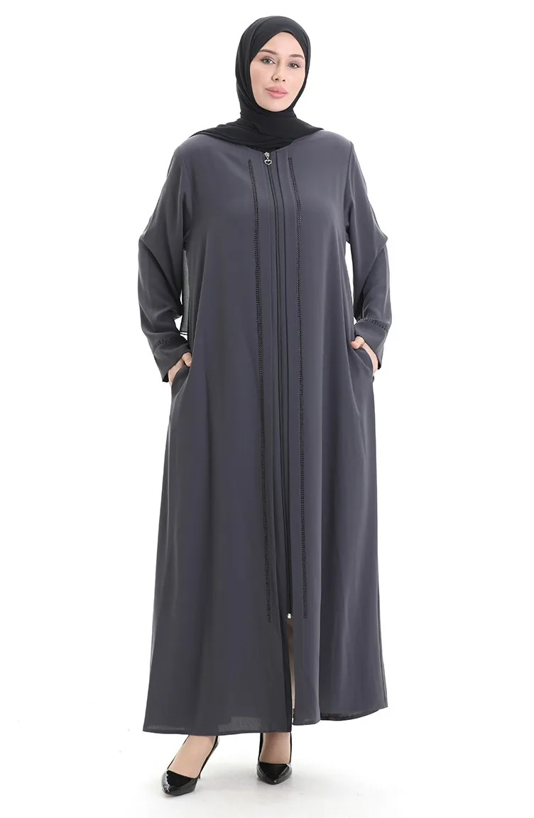 Büyük Beden Taş Baskılı Ferace 4005-08 Füme