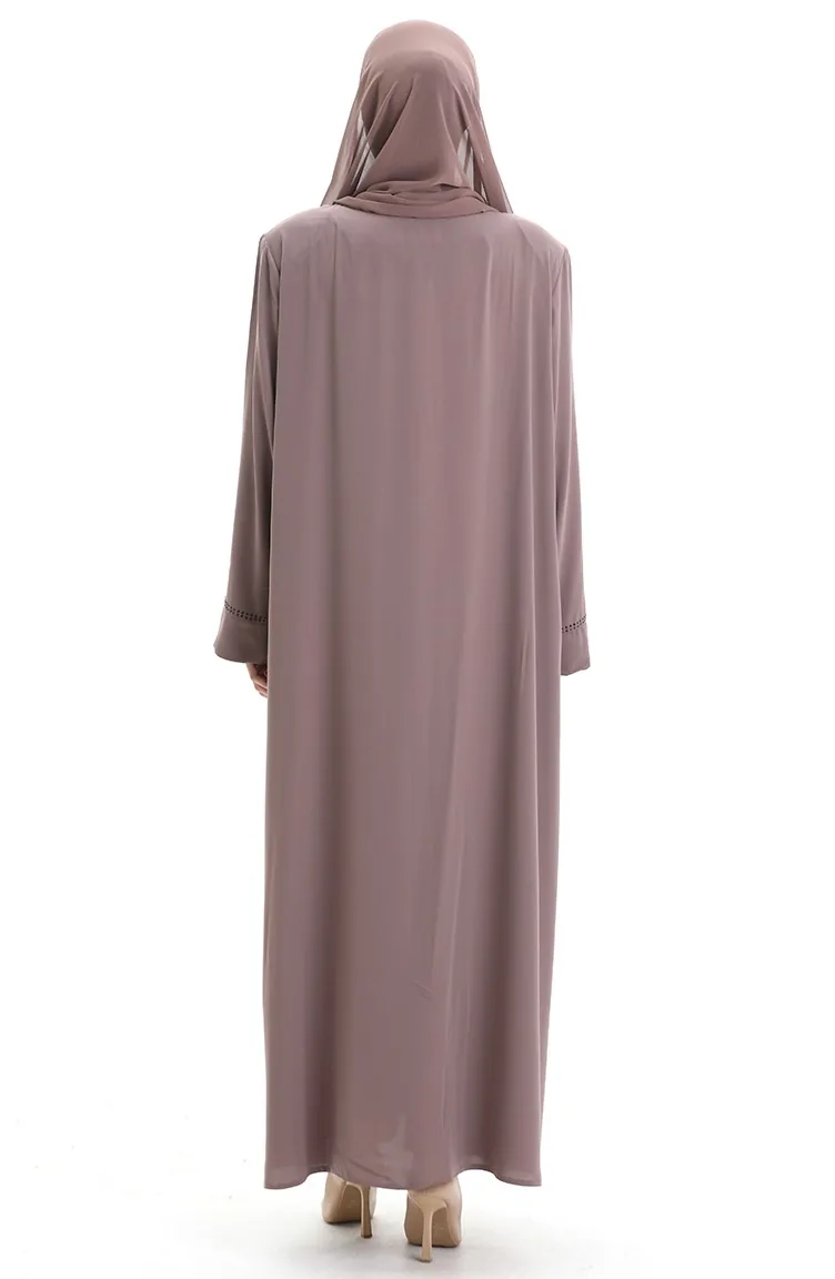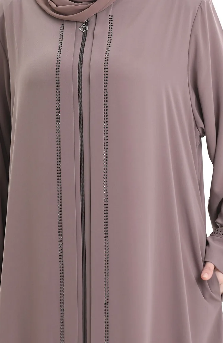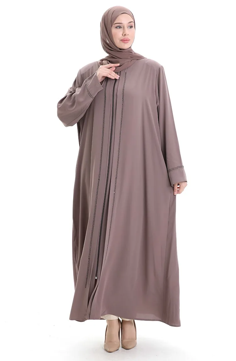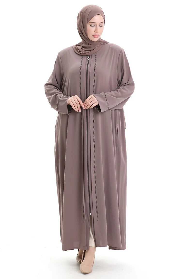 Büyük Beden Taş Baskılı Ferace 4005X-06 Koyu Vizon