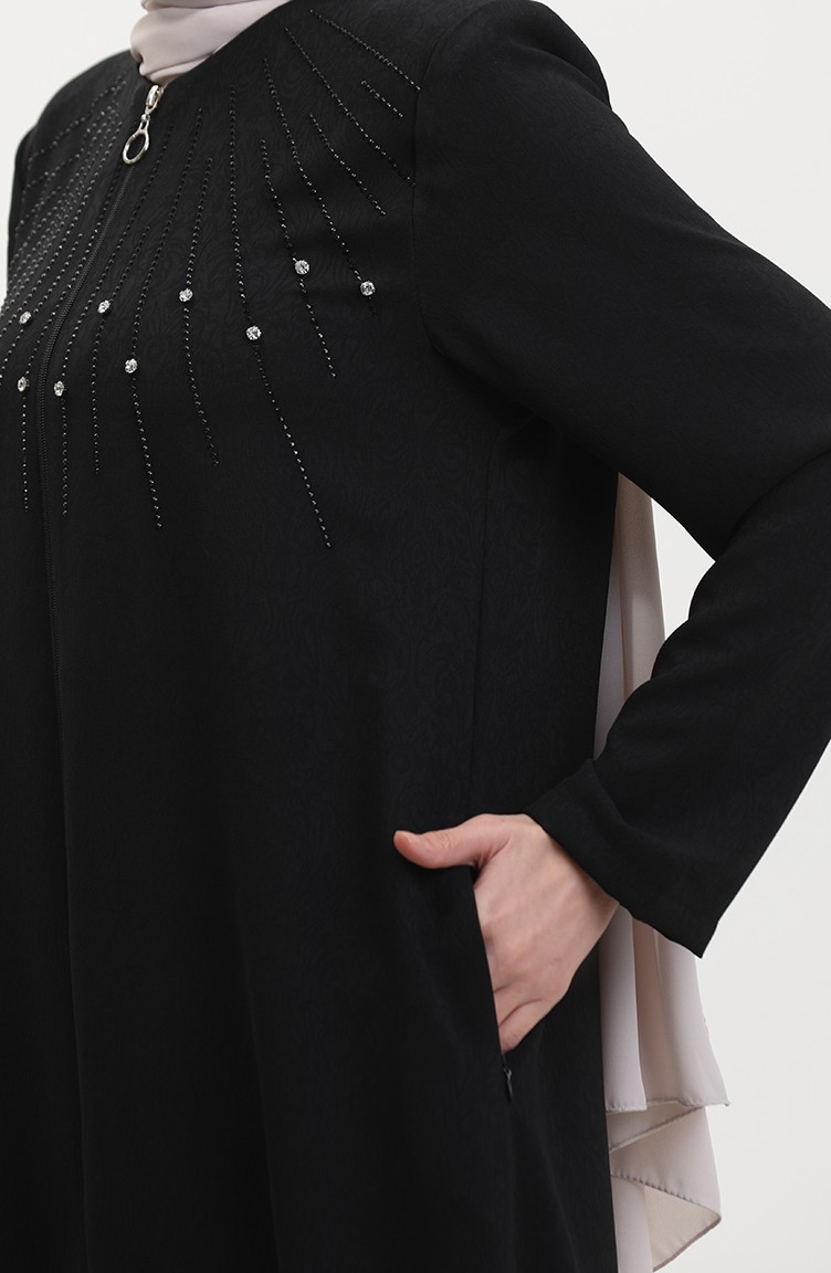 Jamila Jakarlı Çiçek Desenli Yazlık Kadın Ferace Siyah