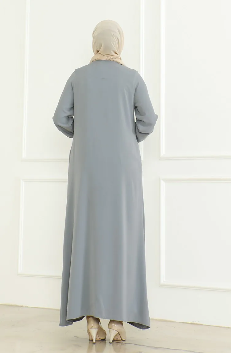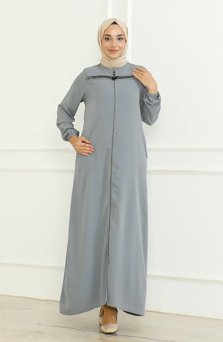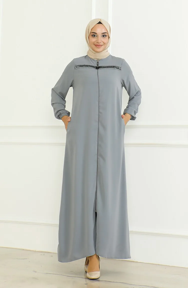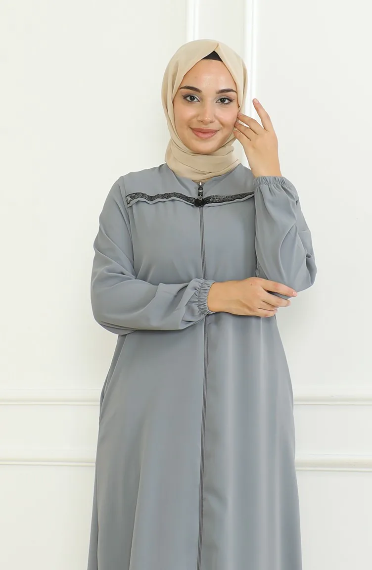 Kolu Lastikli Fermuarlı Ferace 0475-04 Gri