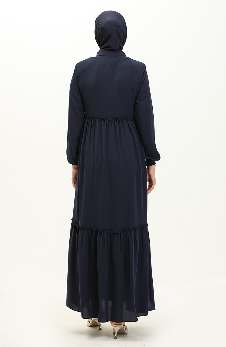 Medine İpeği Büzgülü Ferace 6085-04 Lacivert
