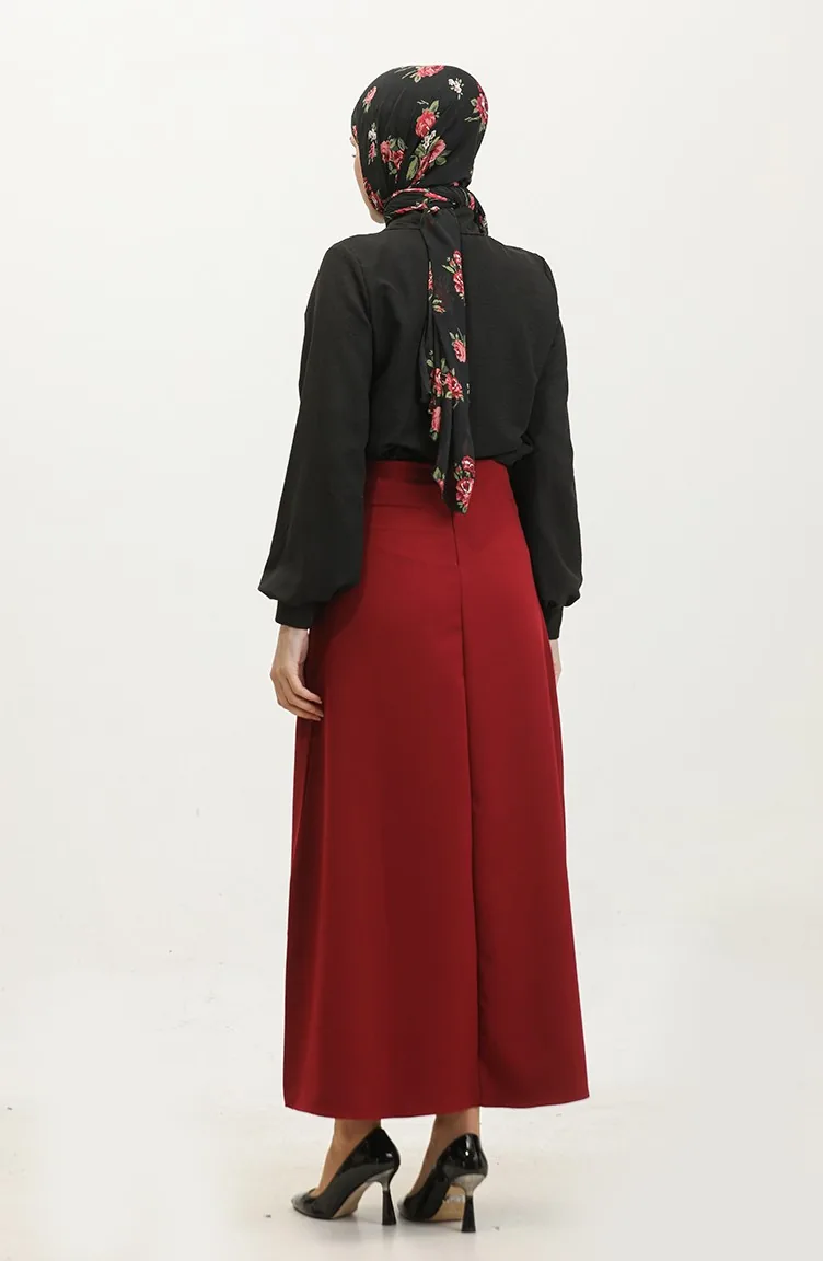 Bordo renktedir. Elastan kumaş. Sade. Astarsız. 4 Mevsim tercih edebilirsiniz. Büyük beden seçeneği mevcuttur.