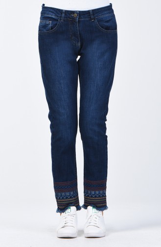 Nakışlı Kot Pantolon 8075-02 Lacivert