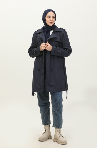Kadın Büyük Beden Astarlı Trençkot Kap Lacivert