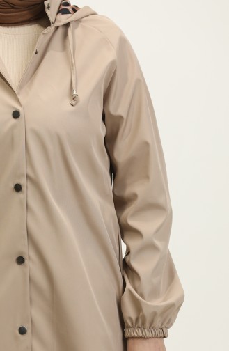 Kadın Spor Kapüşonlu Trençkot Kap Bej