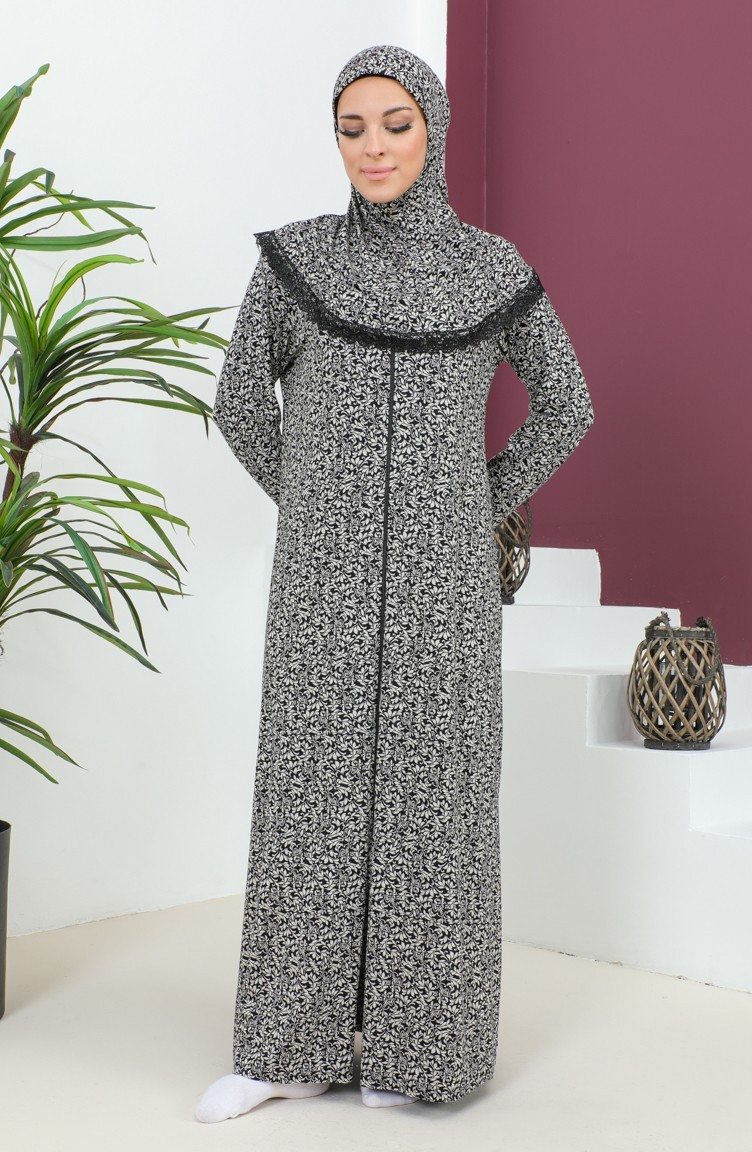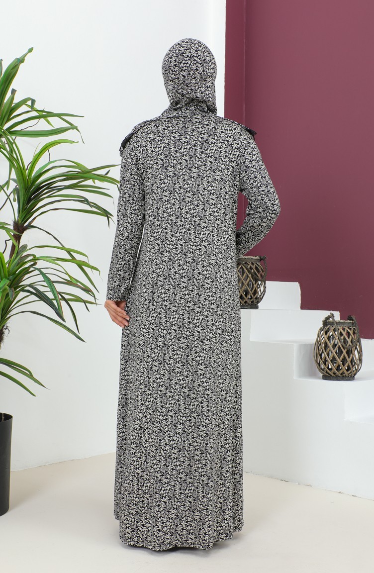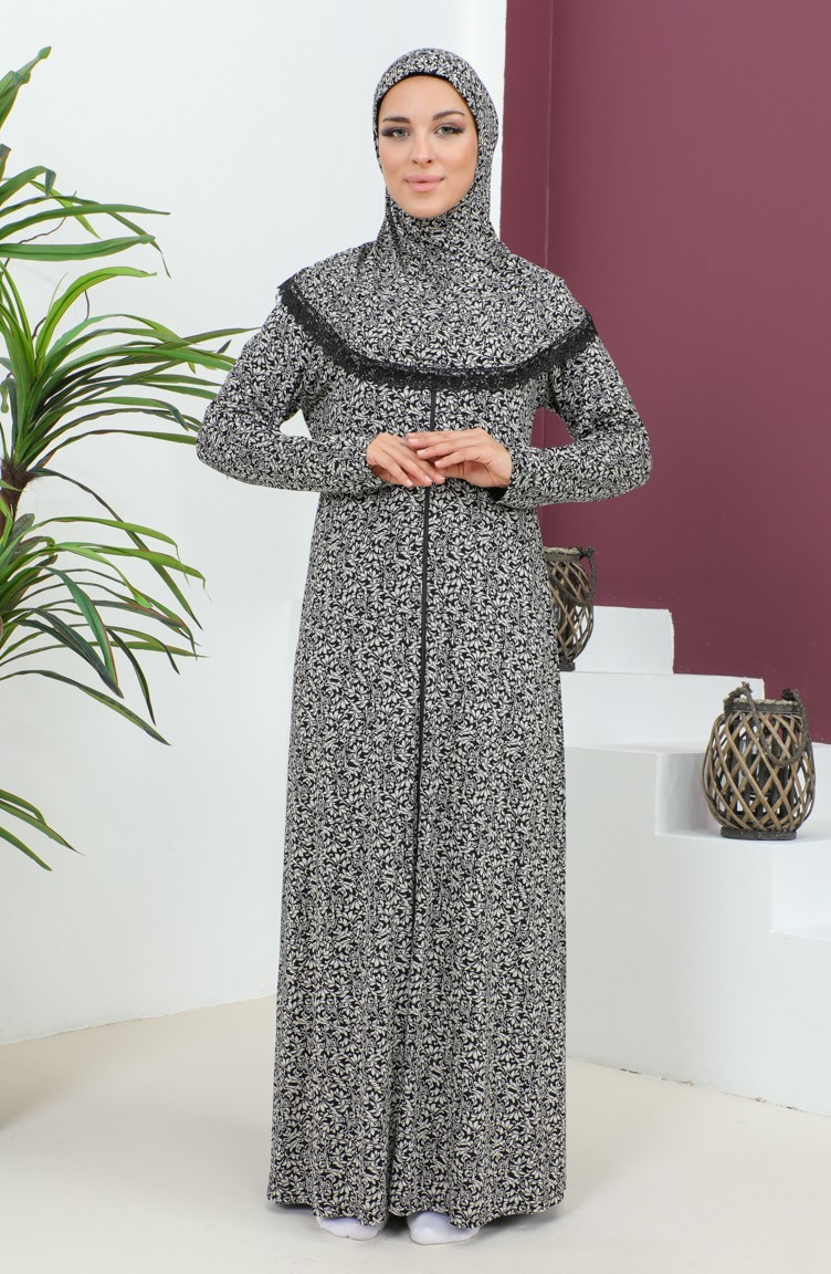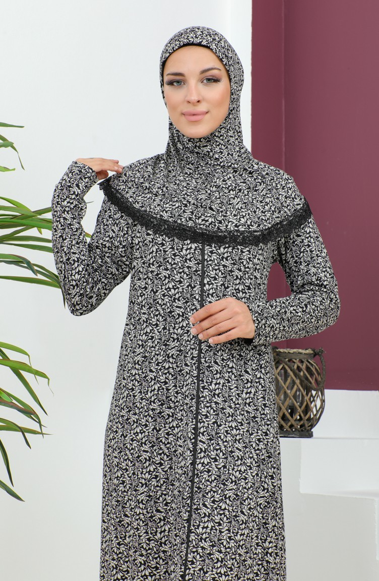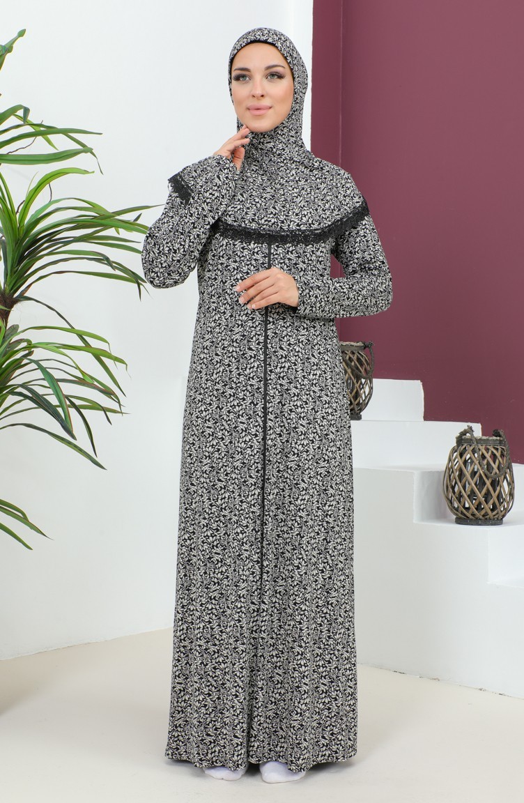 Desenli Viskon Namaz Elbisesi 4487-02 Siyah
