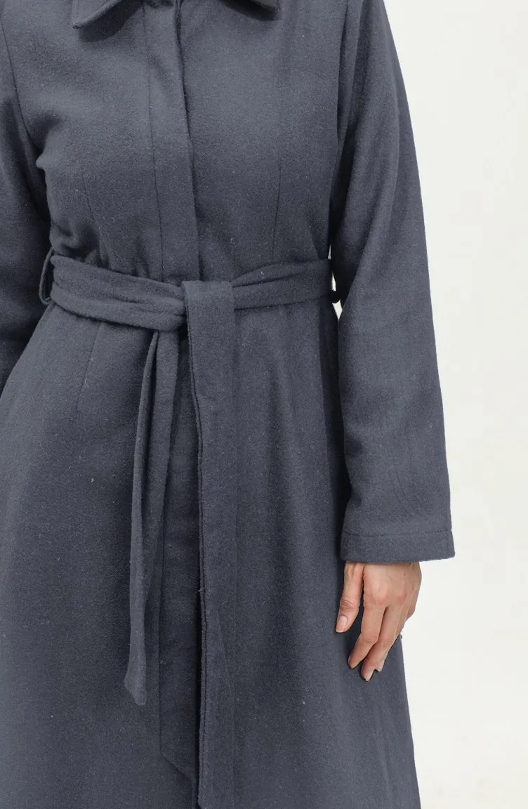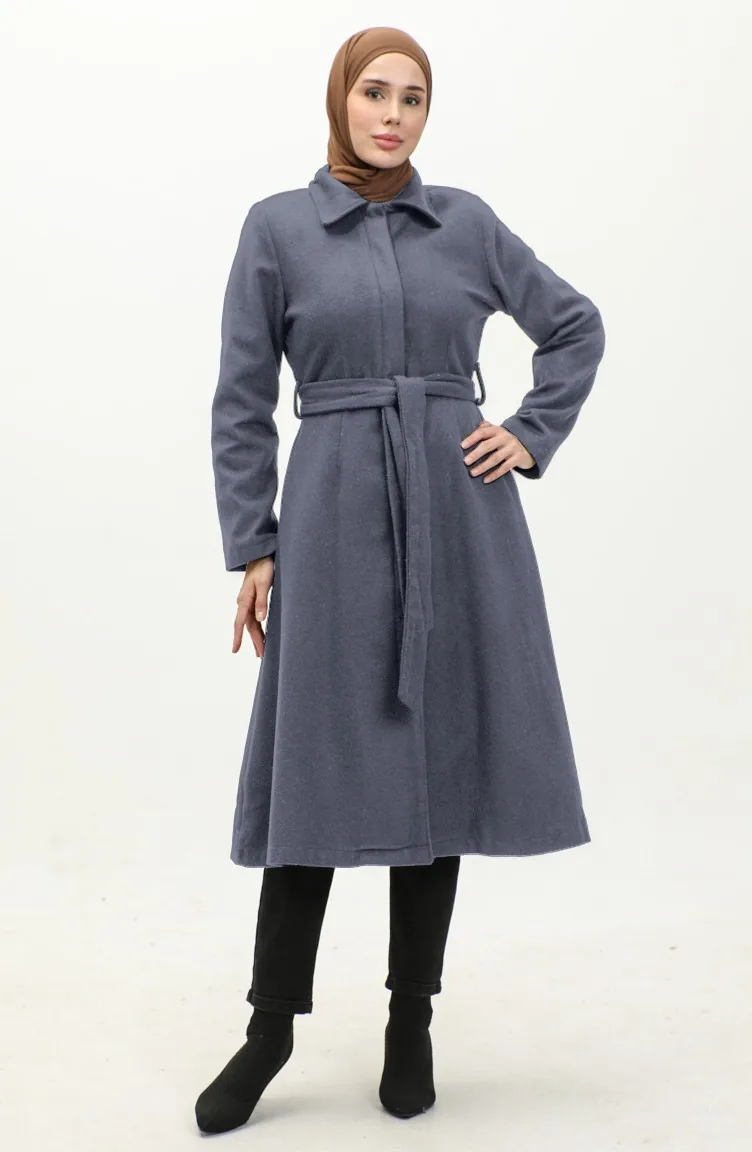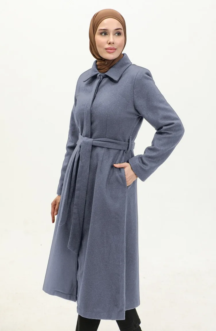 Gestikte Jas Met Riem En Verborgen Sluiting 71207-02 Grijs 71207-02