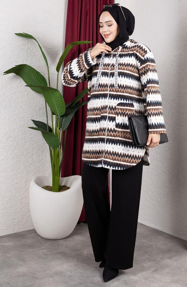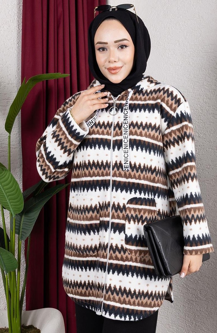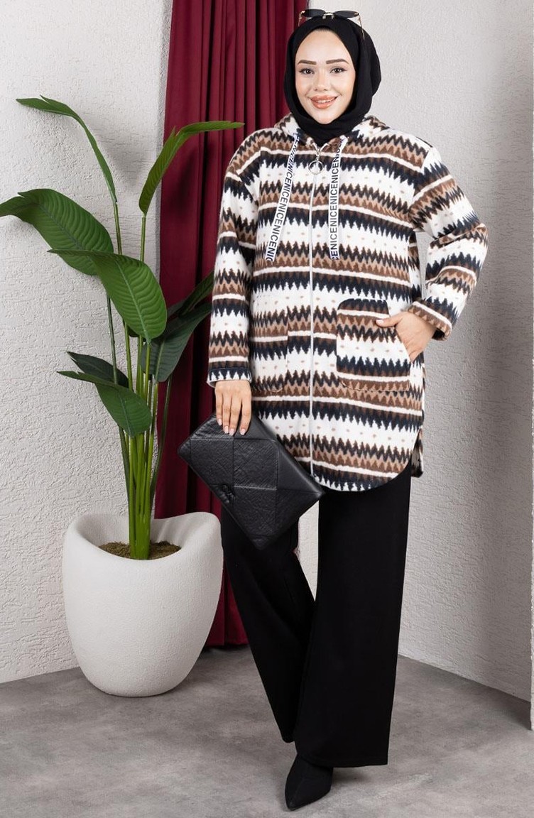 Gestreept Pluchen Vest Met Capuchon 2062-09 Bruin 2062-09