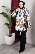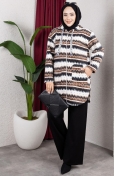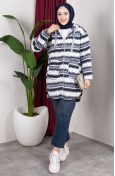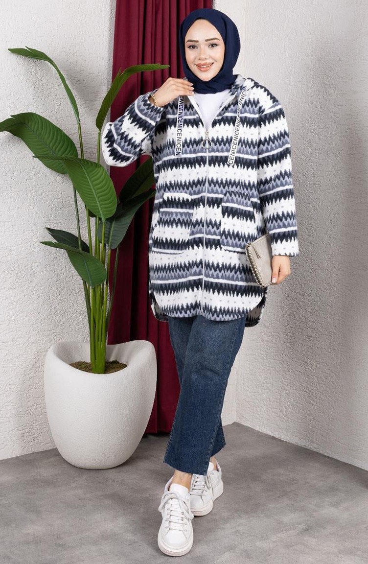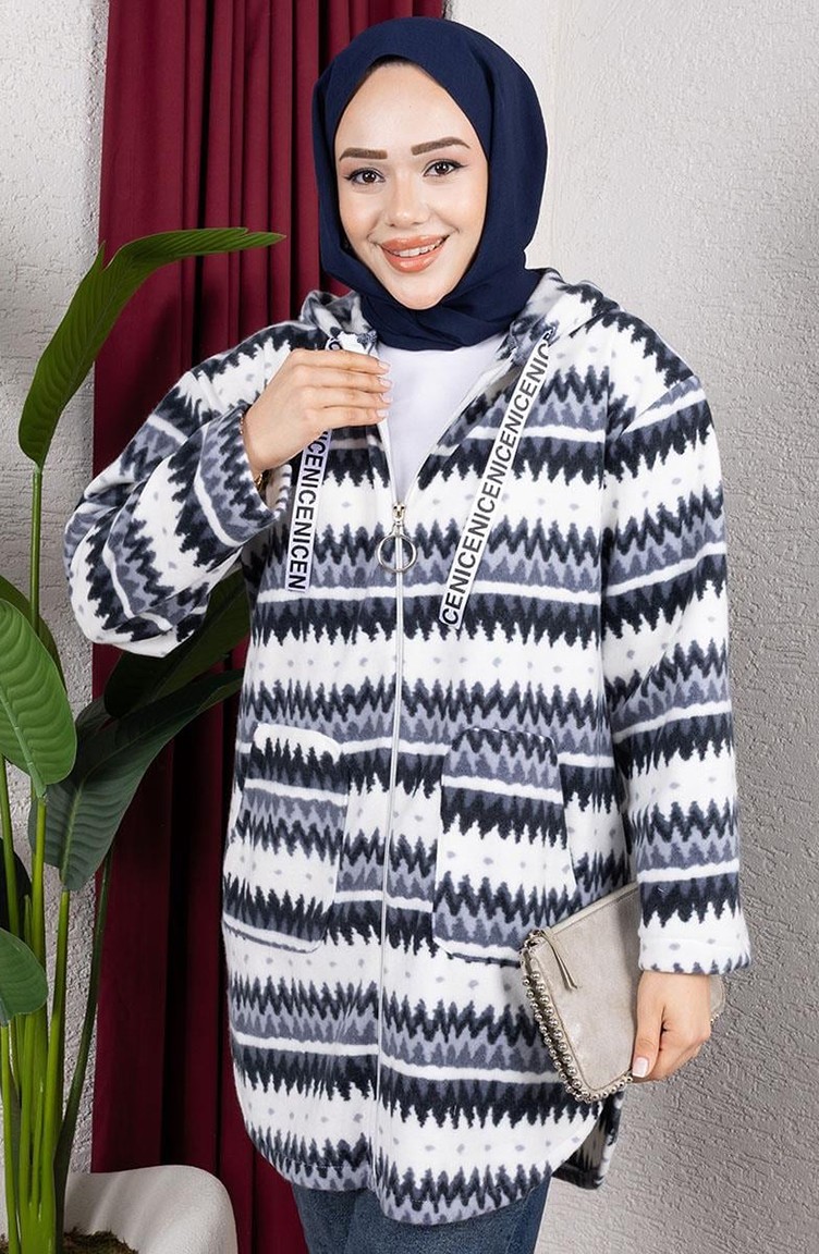 Polar fabric is used. Designed with patterned fabric. Zipper is used for easy handling. Designed from thick fabric. The size worn by the model, is the one on the image.