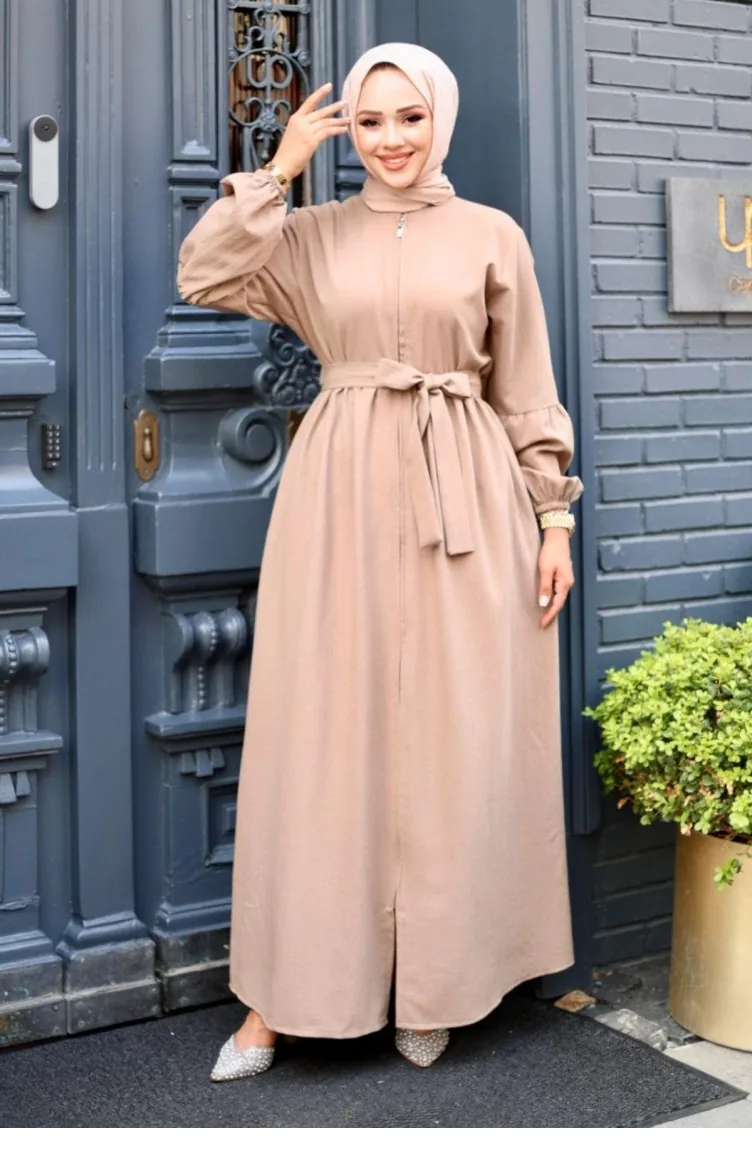 Abaya Mink Met Ballonmouwen En Gedetailleerde Ritssluiting 4420 517