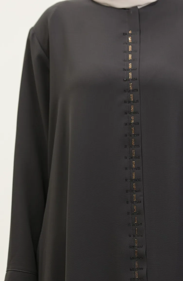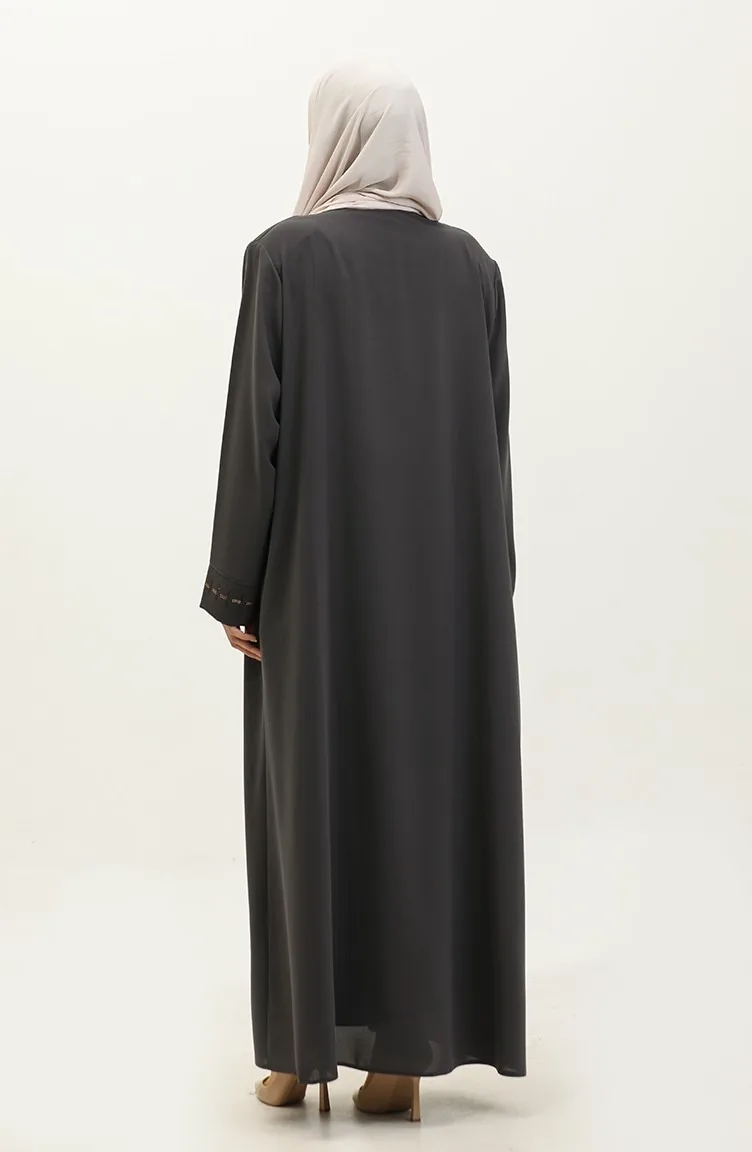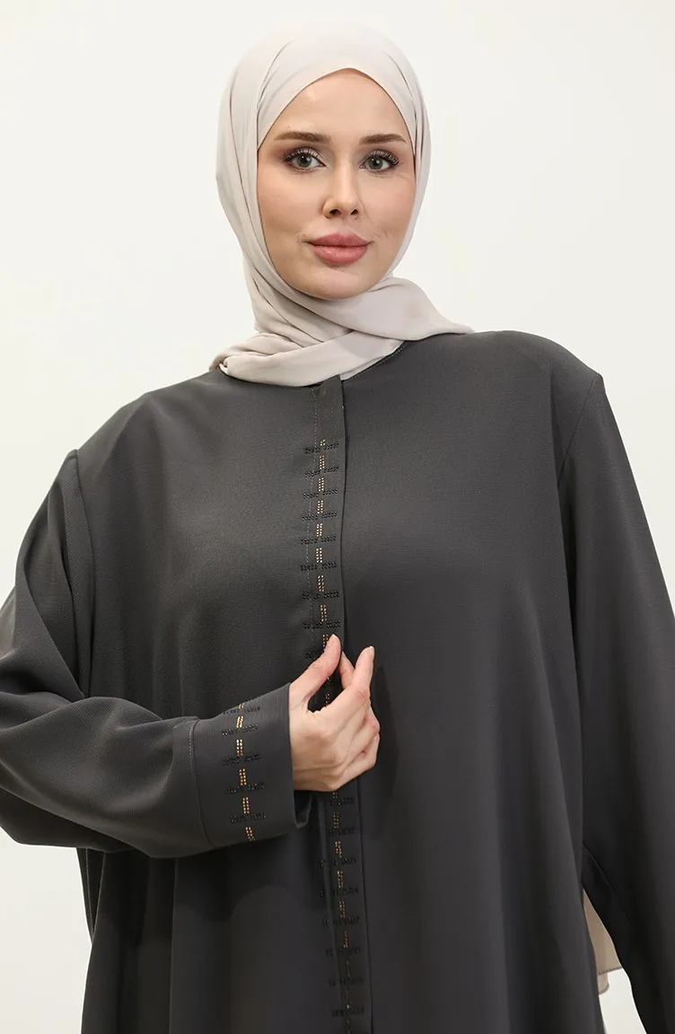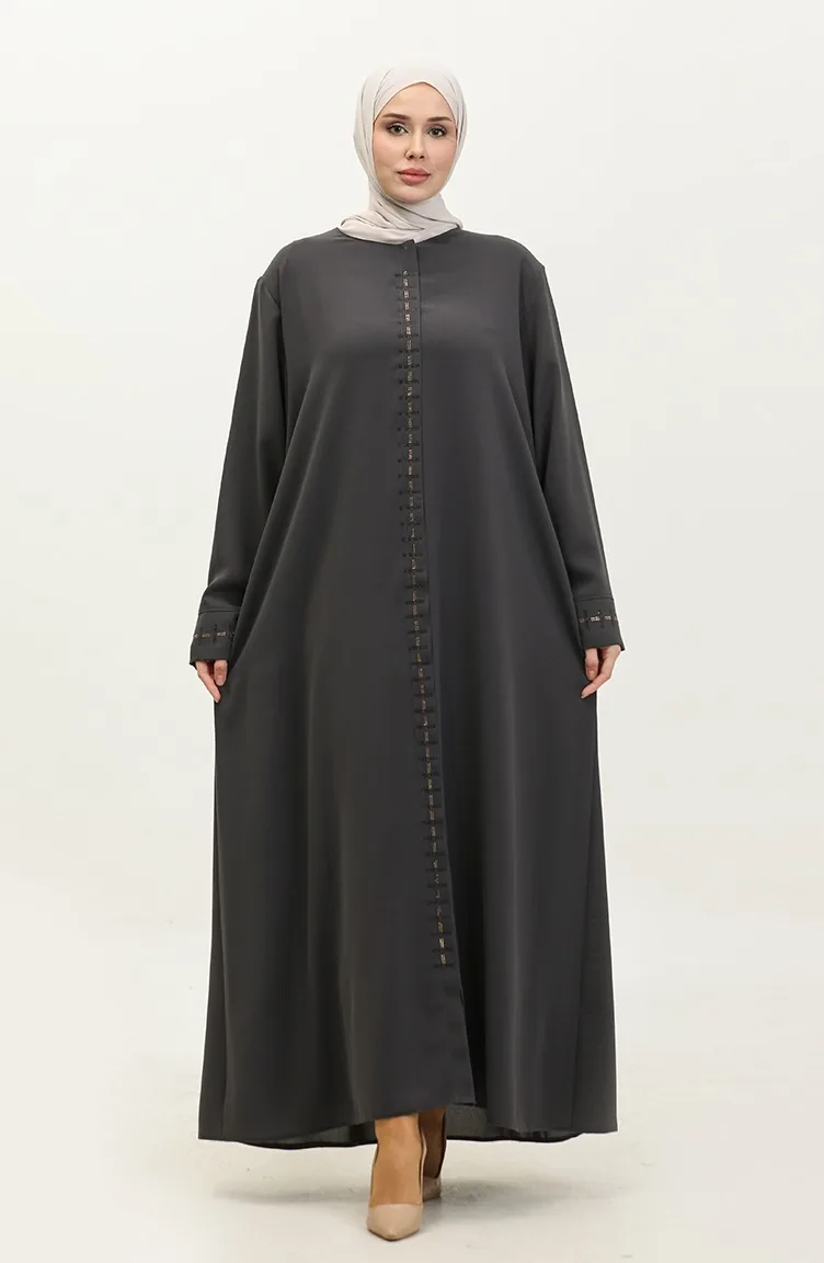 Groot Formaat Abaya Met Verborgen Ritssluiting 5068-06 Gerookt 5068-06