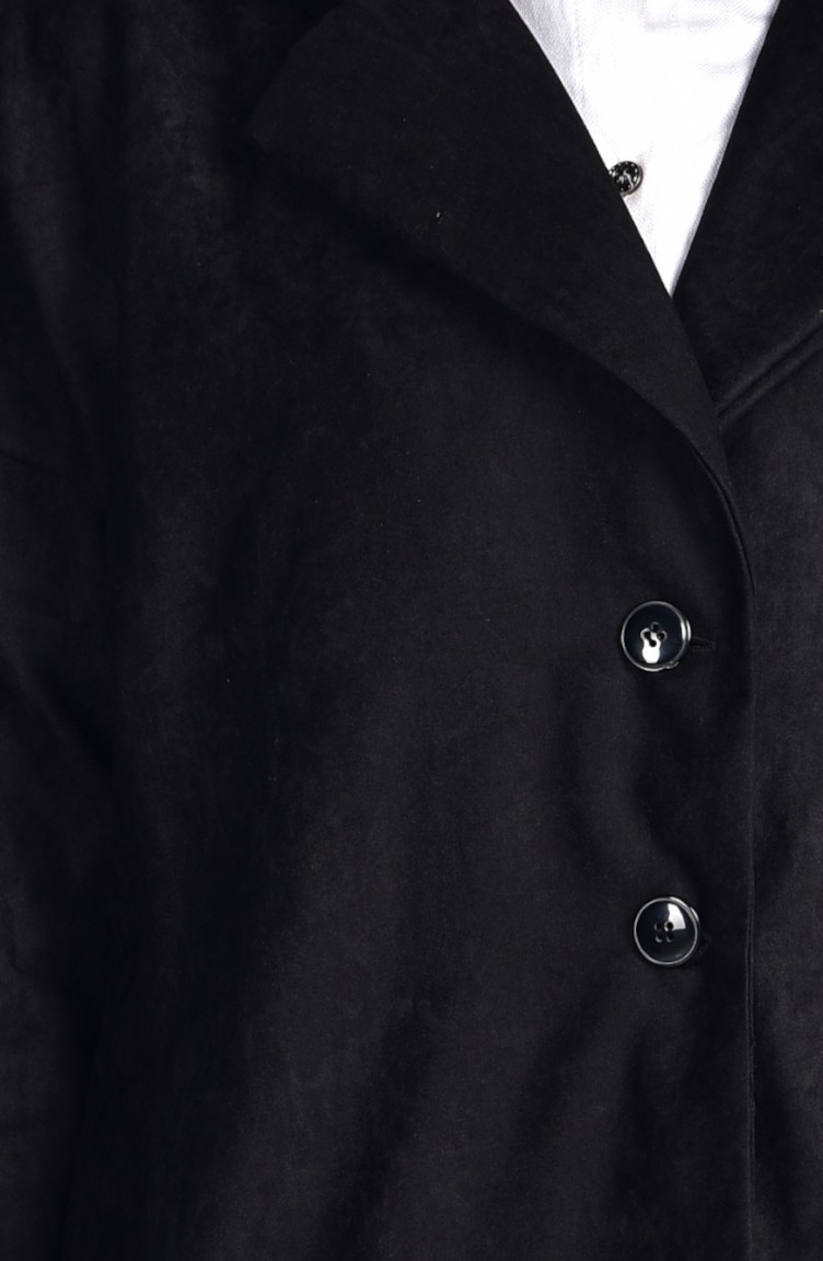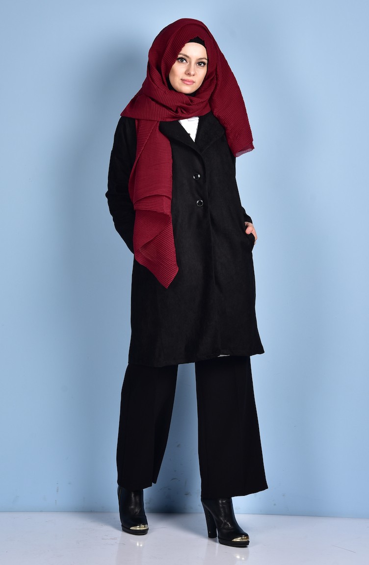 Black color is used. Polyester fabric often prevents wrinkling. It has a plain appearance. The product is used unlined. Long sleeve product. Suitable for 4 seasons. Plus size option available.