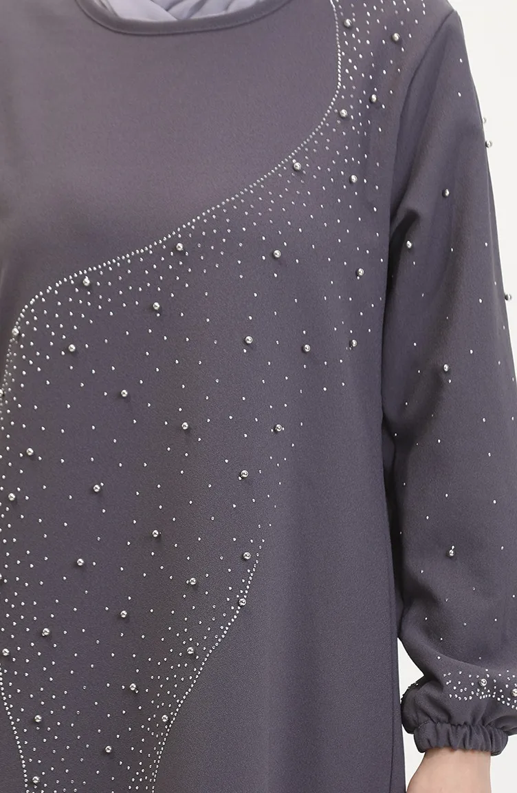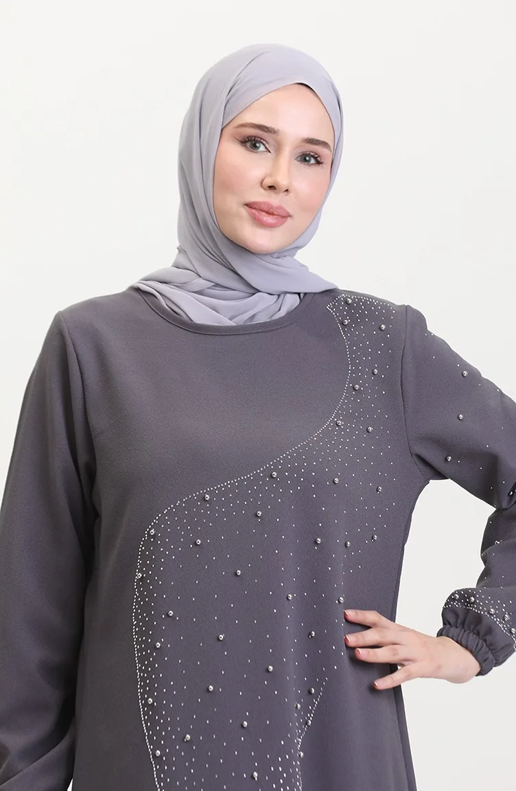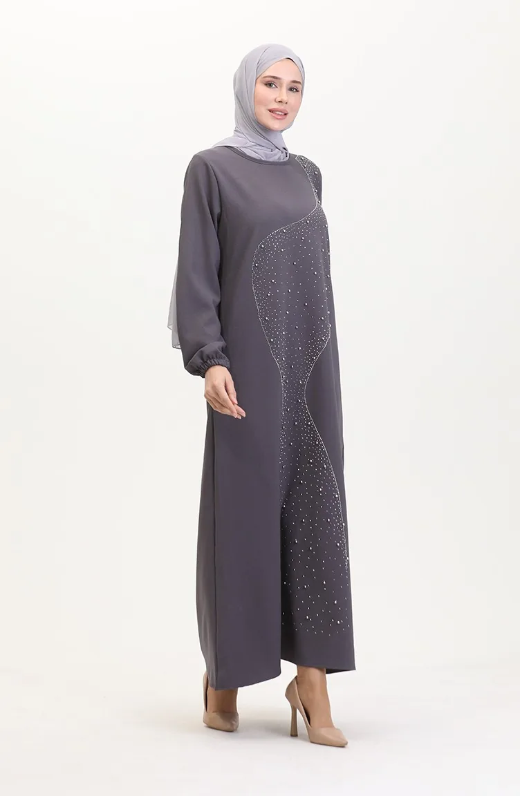 Avondjurk Met Steenprint 0407-06 Grijs 0407-06