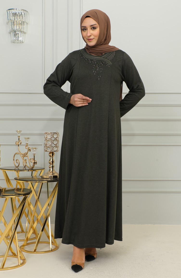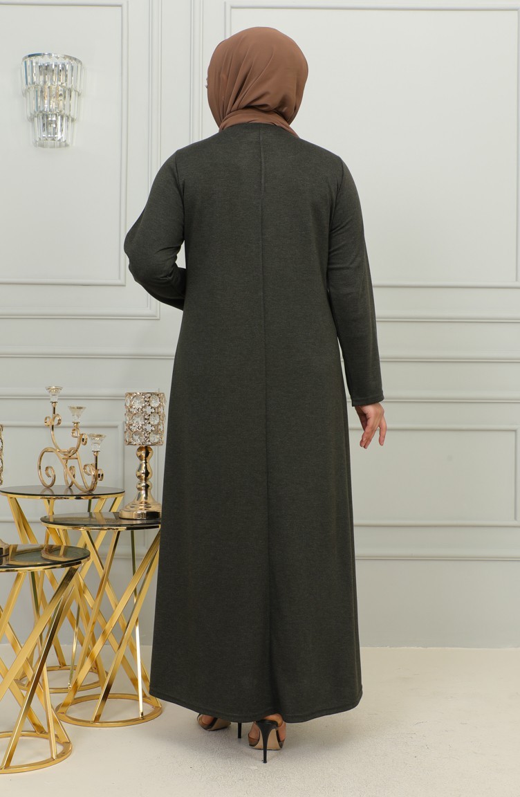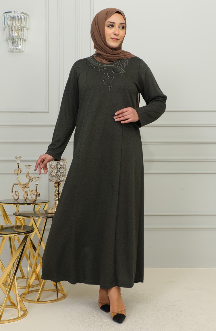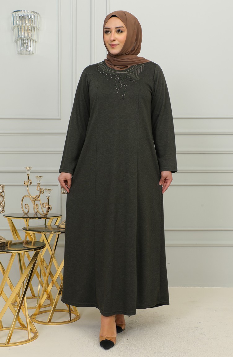 Plus Size Geborduurde Viscose Jurk 4879-01 Khaki 4879-01