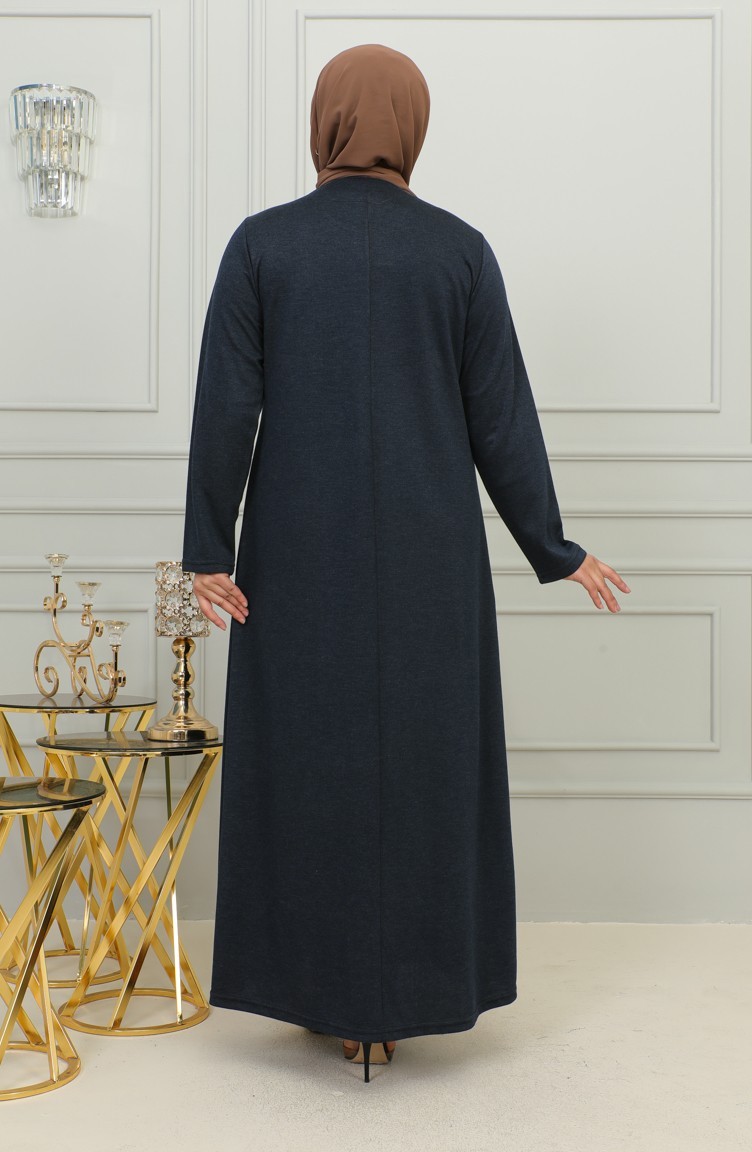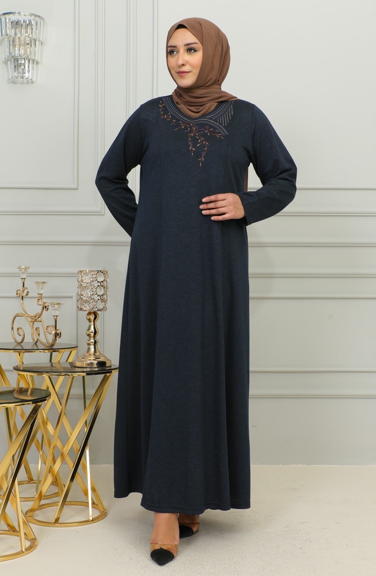 Plus Size Geborduurde Viscose Jurk 4879-02 Marineblauw 4879-02
