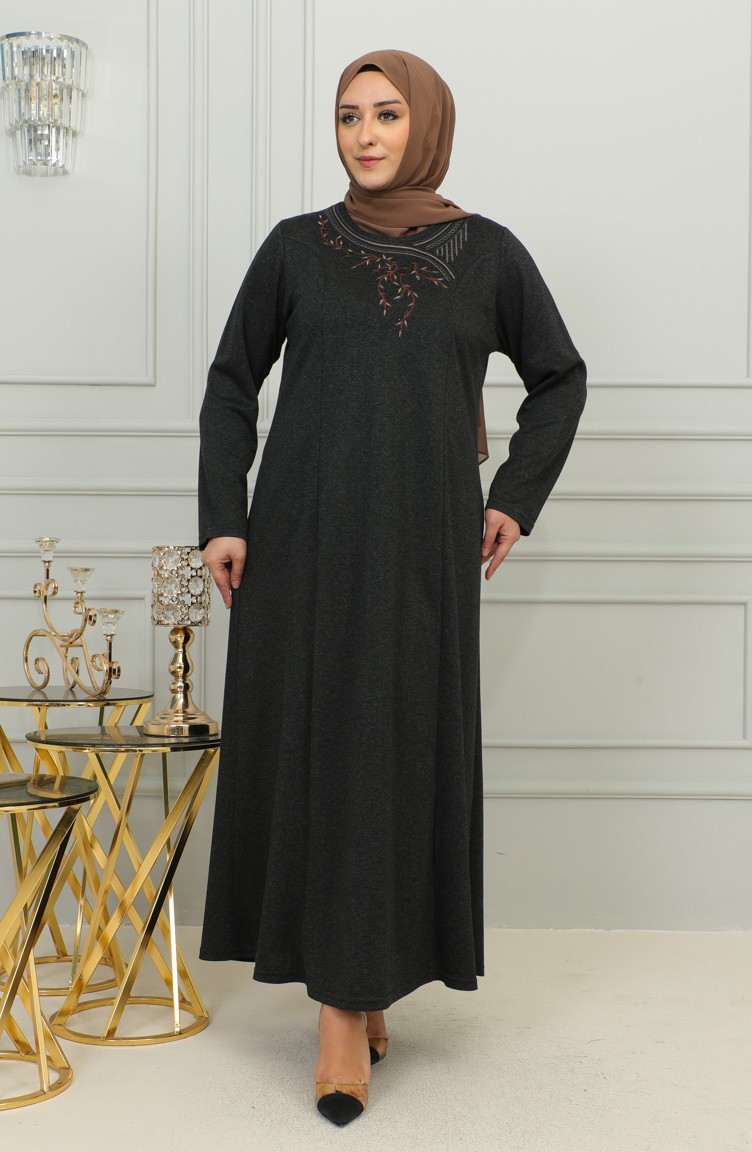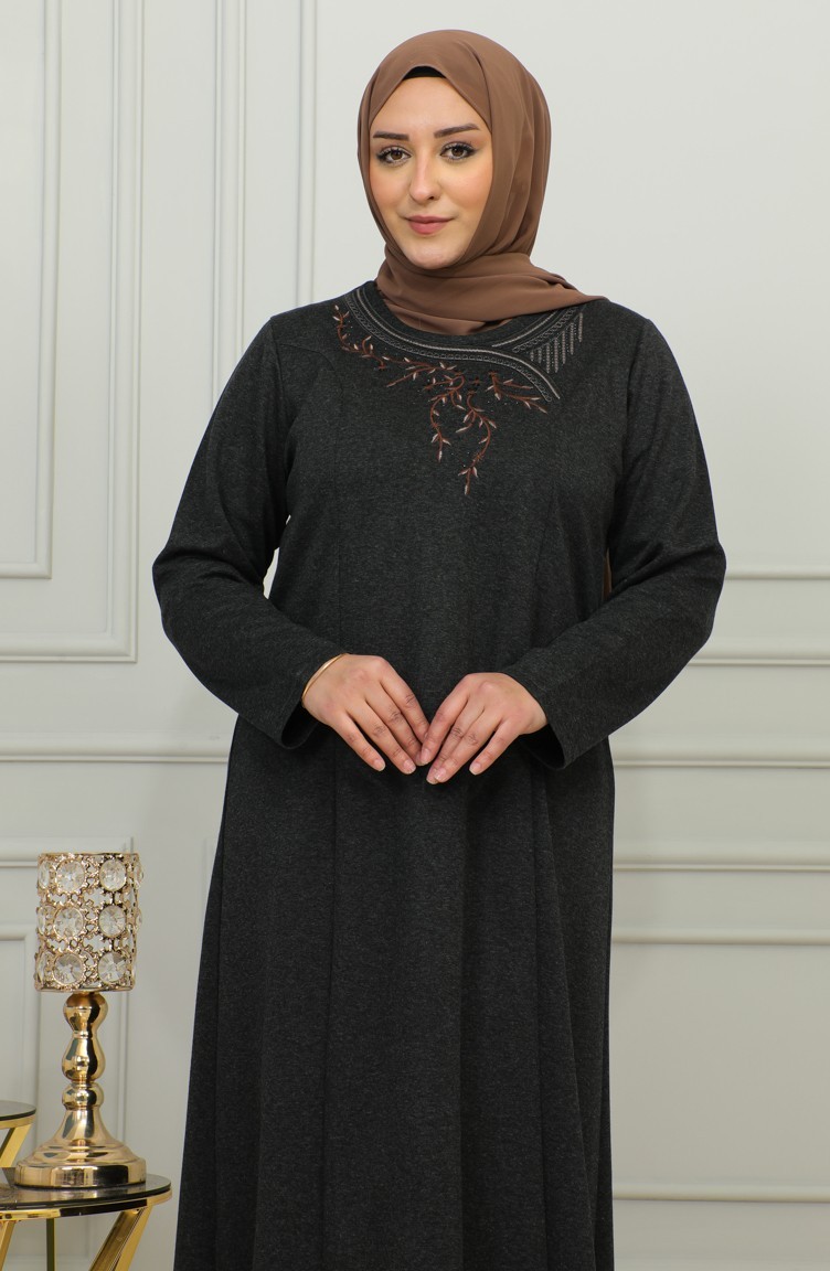 Plus Size Geborduurde Viscose Jurk 4879-03 Zwart 4879-03