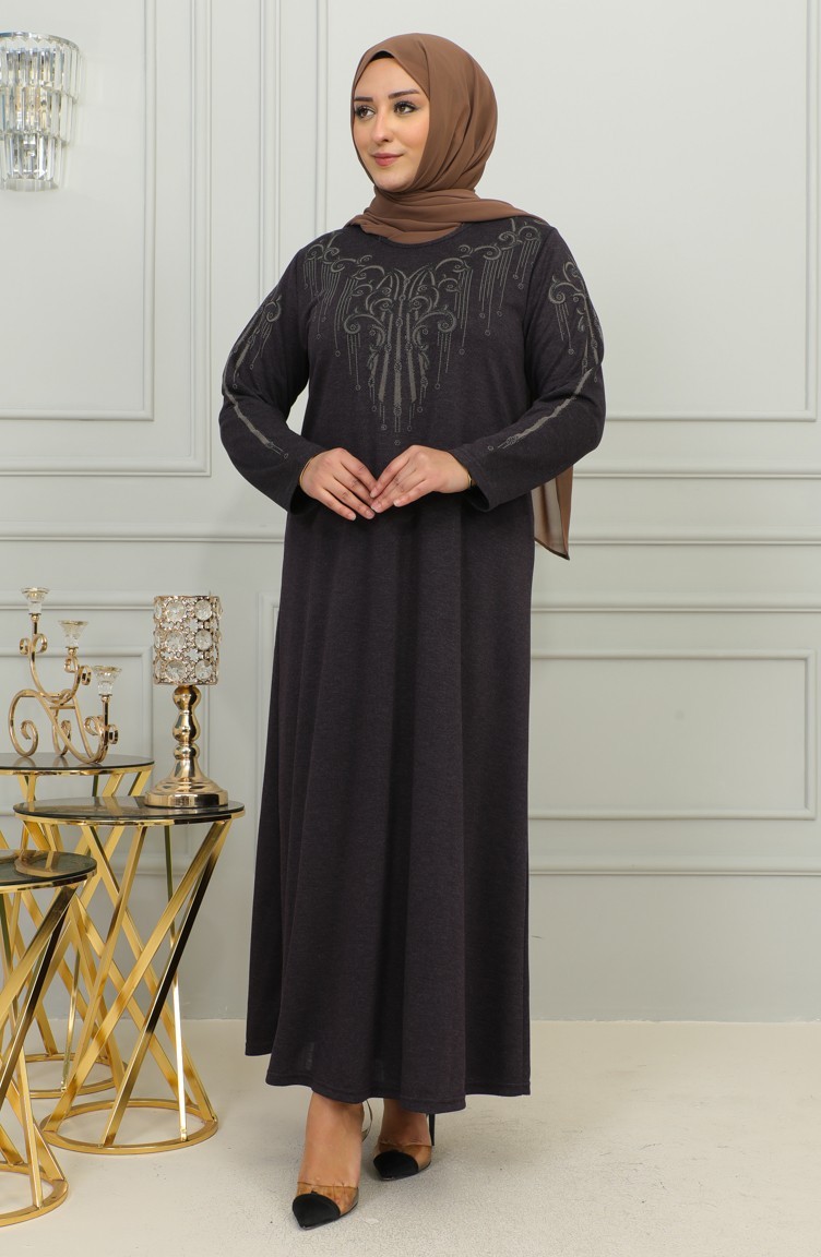 Plus Size Geborduurde Viscose Jurk 4958-04 Pruim 4958-04