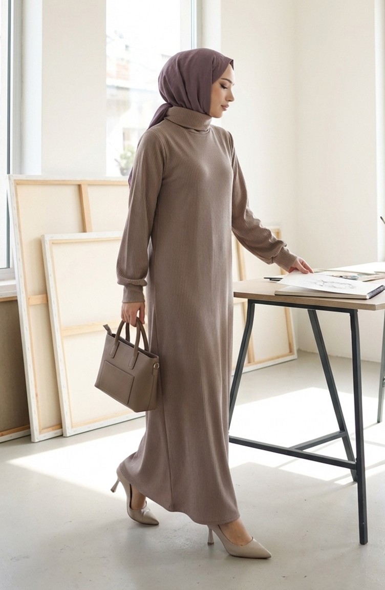 Geribbelde Coltrui-hijabjurk 2188-01 Nerts 2188-01