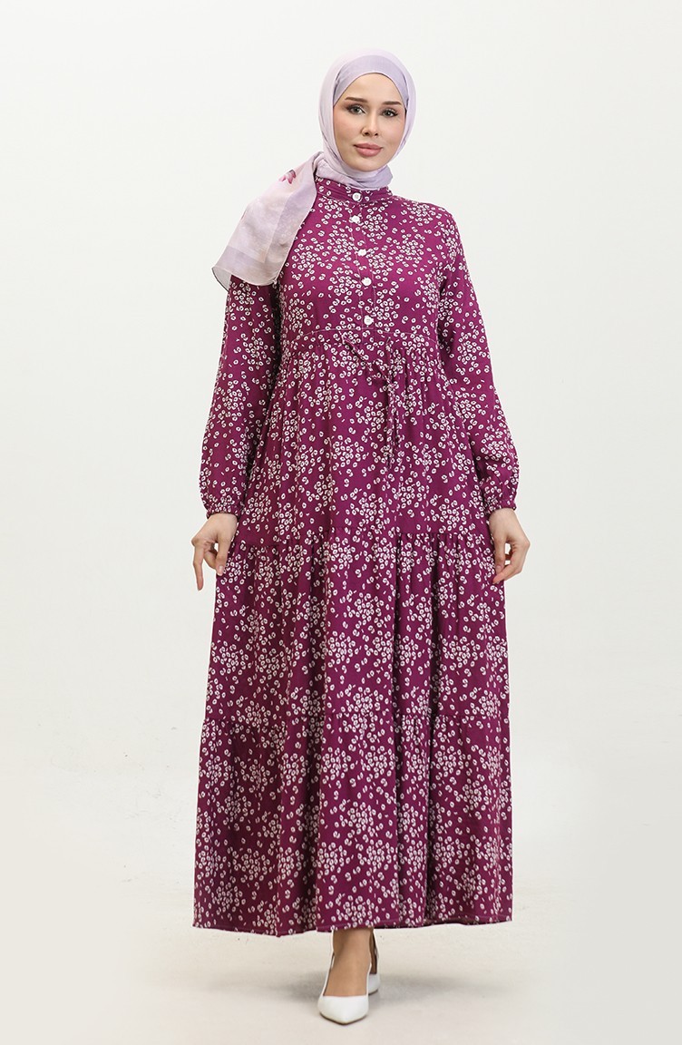 Gülsüm Viscosejurk Met Halve Knopen En Bloemen 0358-02 Pruim 0358-02