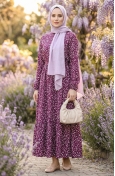 Gülsüm Viscosejurk Met Halve Knopen En Bloemen 0358-05 Bordeauxrood 0358-05