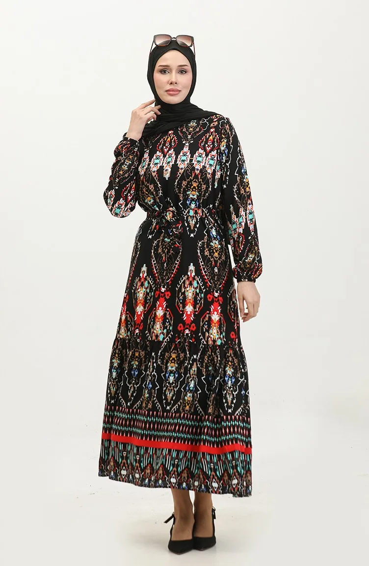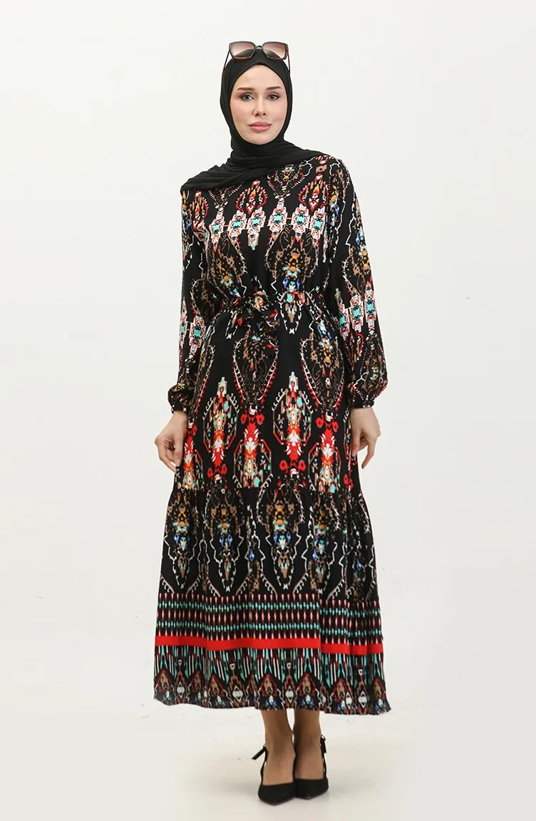 Hüma Viscosejurk Met Patroon 0360-05 Zwart 0360-05