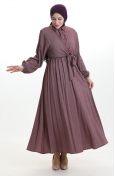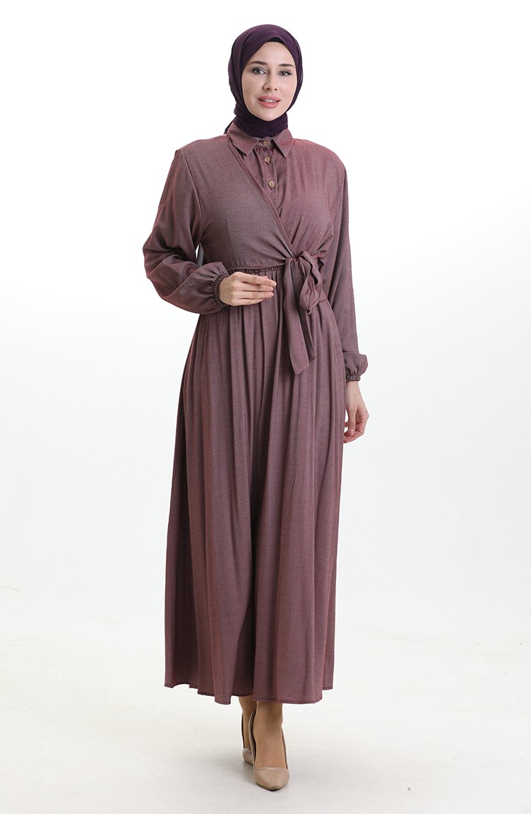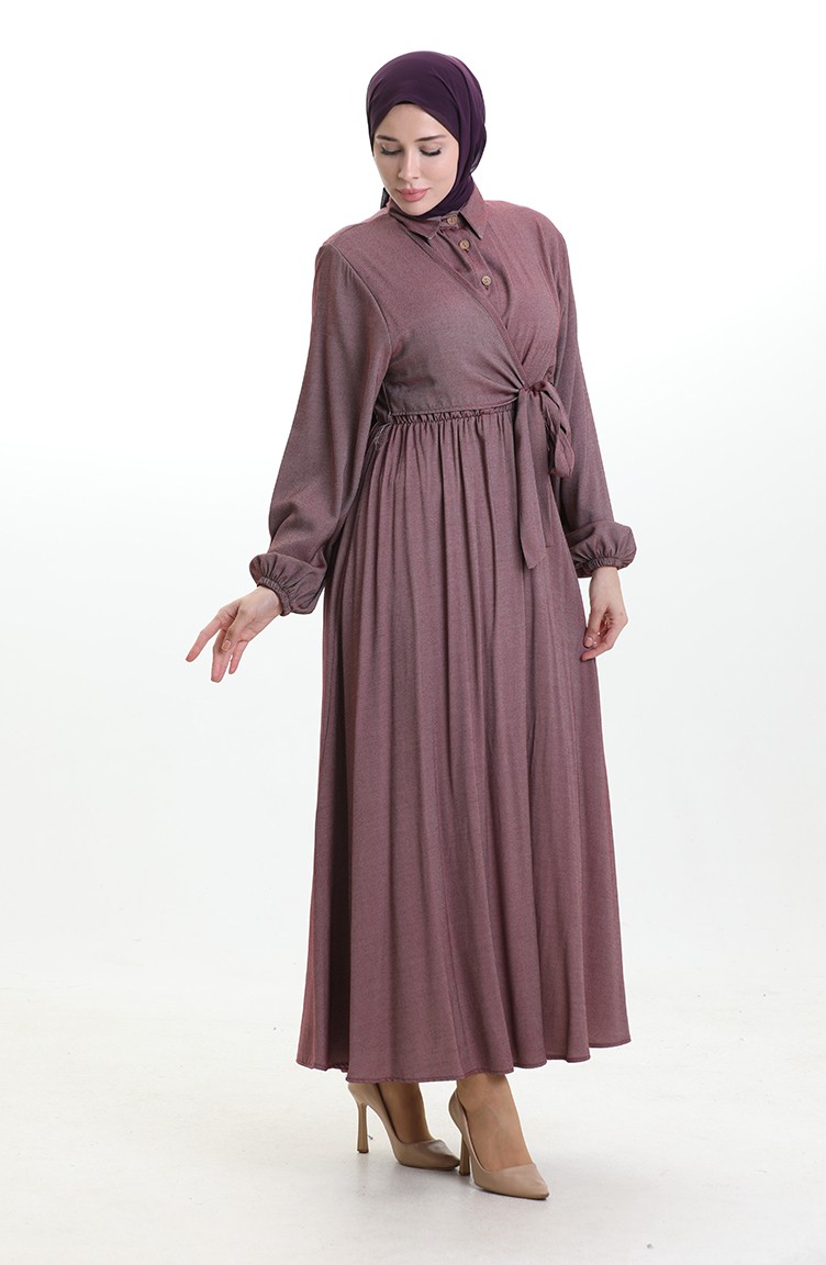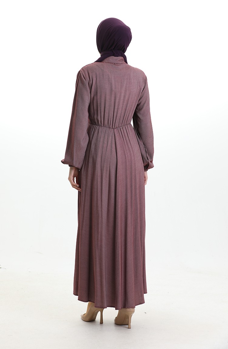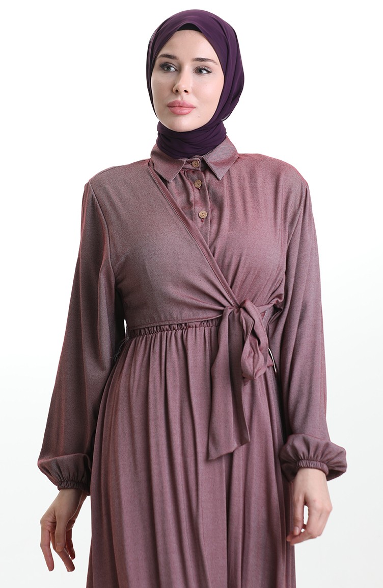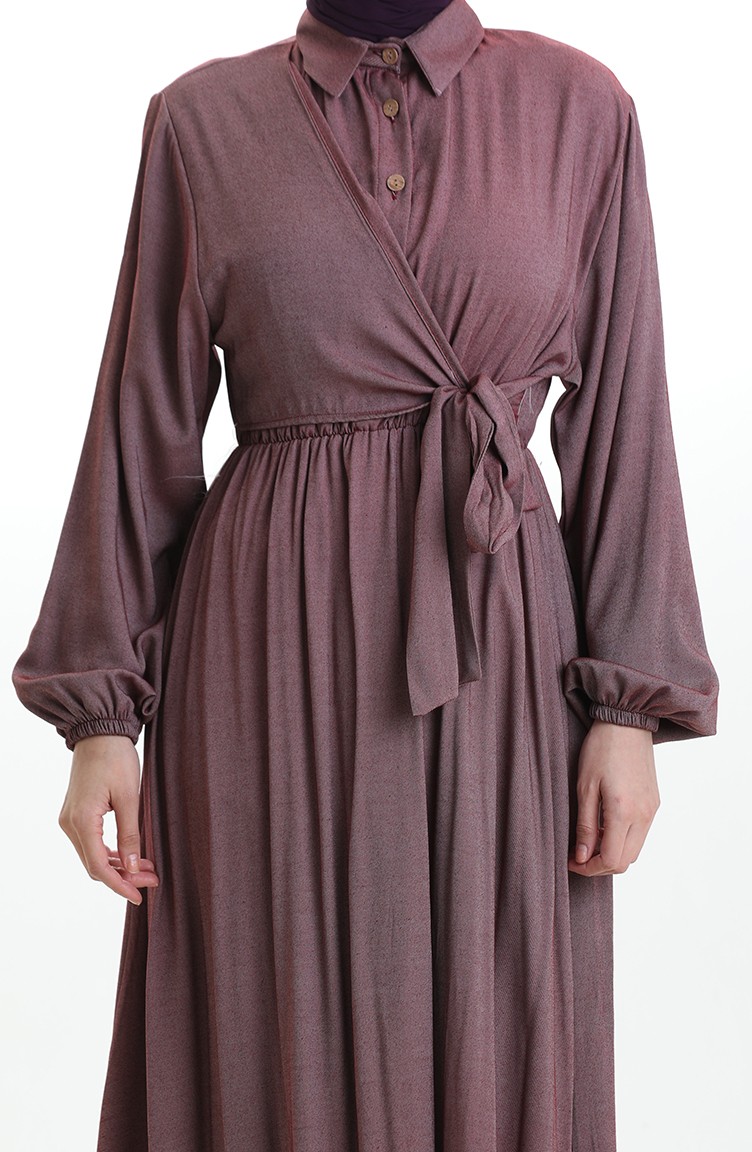 Jurk Met Dubbele Rij Knopen En Riem 0199-02 Claret Red 0199-02