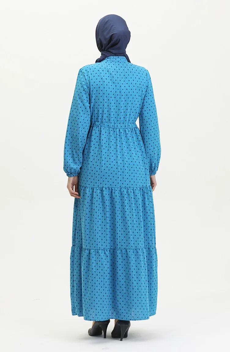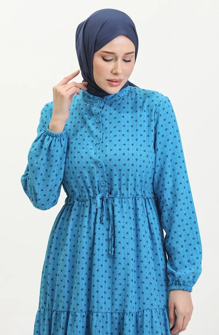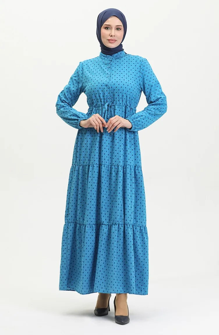 Jurk Met Halve Knopen En Patroon 0387-06 Indigo 0387-06